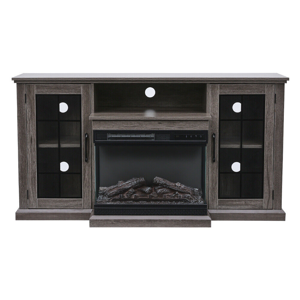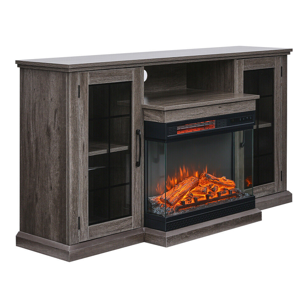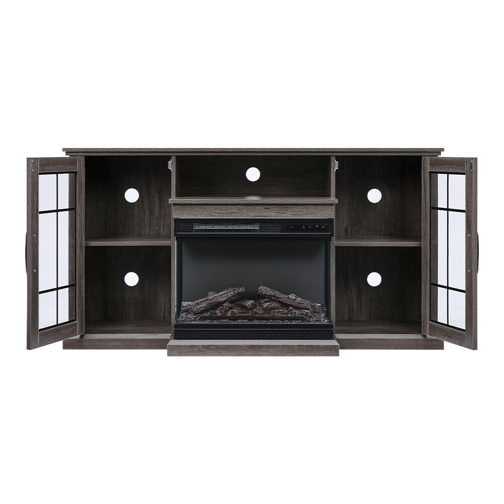 60" TV Stand with Electric Fireplace Heater Set 3 Colour Fire/4 Storage Cabinet