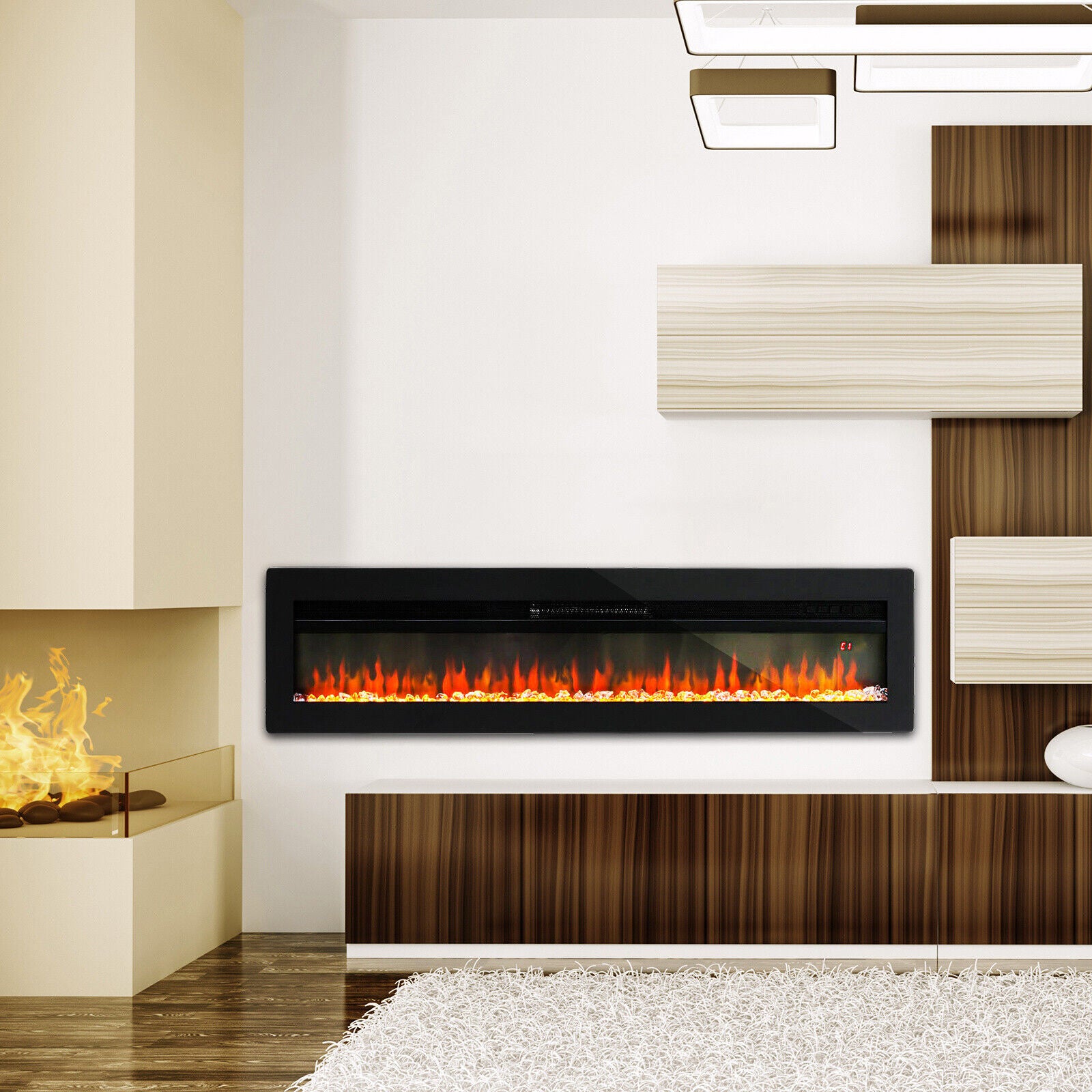 Features Adjustable Brightness, Adjustable Flame Colors, Adjustable Thermostat, LED Flames, Remote Control, Wall-Mountable, Inset / Freestanding