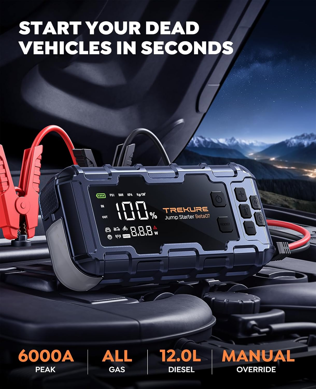 6000A Car Jump Starter 160PSI Air Compressor Power Bank 45W Fast Charger QC3.0