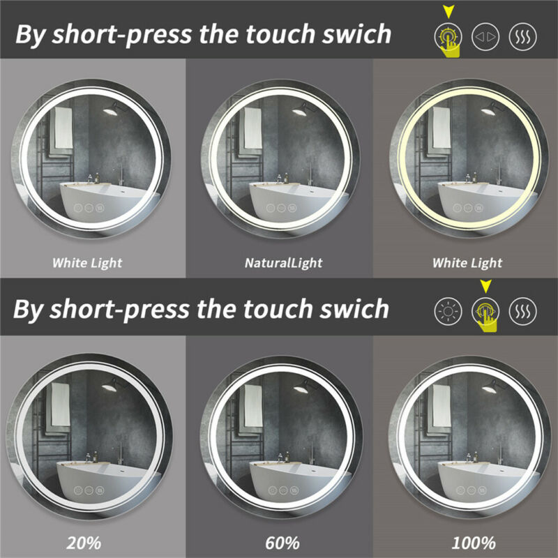 600mm Diameter Anti-fog Illuminated LED Bathroom Mirror Wall Mounted Waterproof