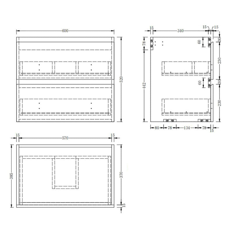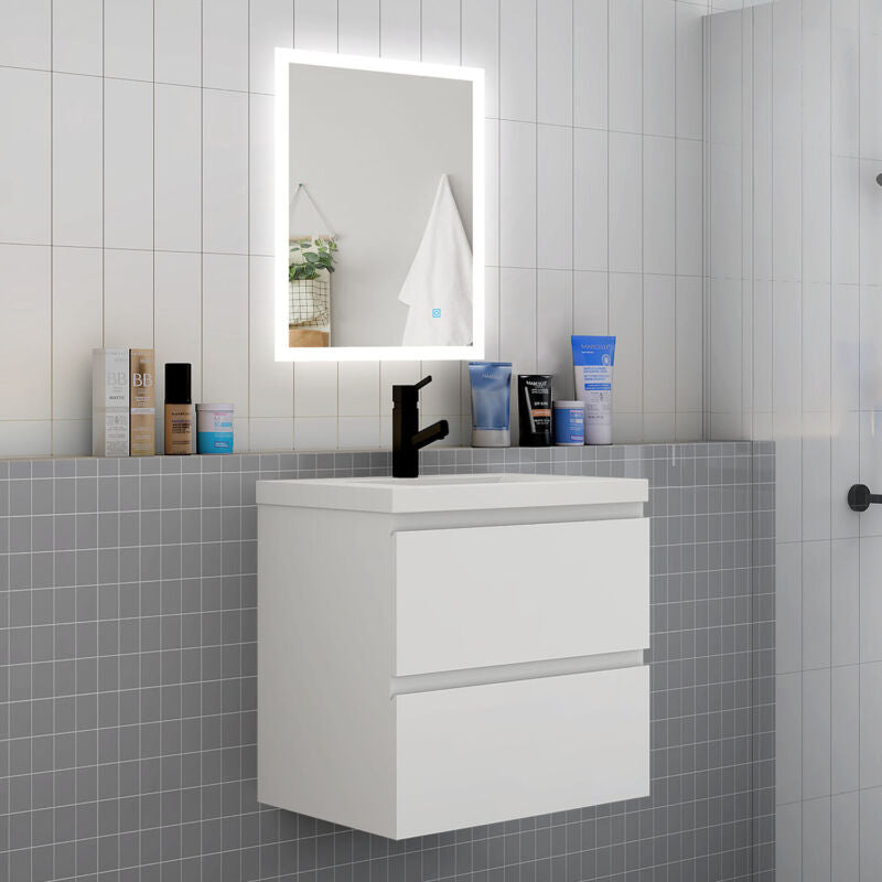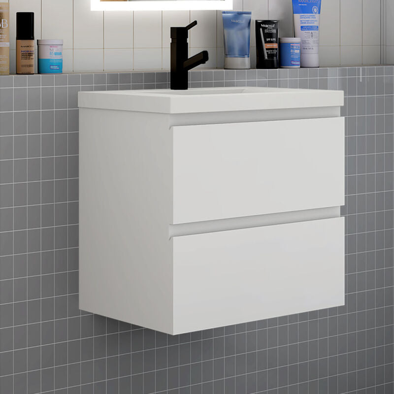 600mm White Bathroom Vanity Unit with Basin Sink Storage Wall Hung Cabinet Flat