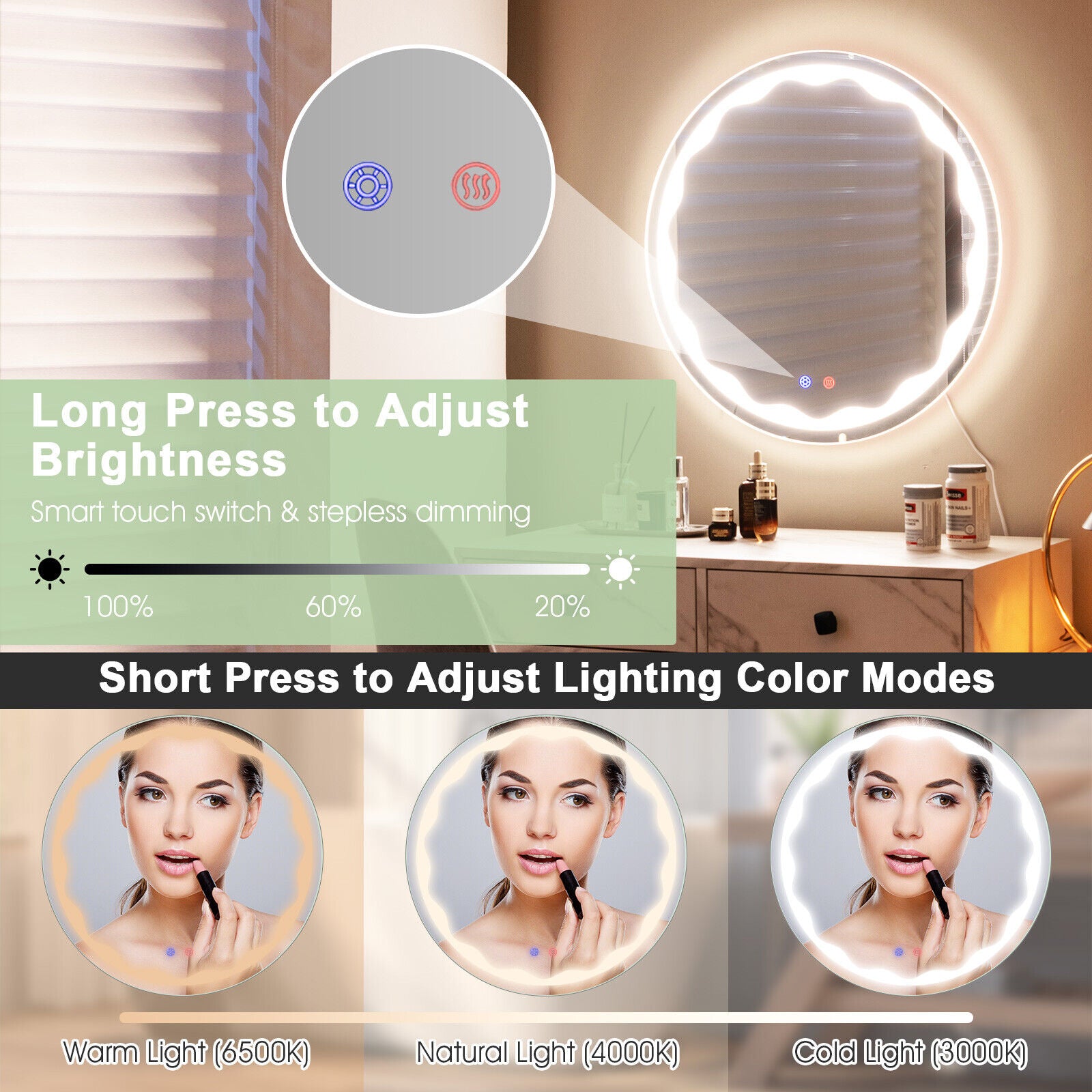 60cm Bathroom Mirror LED Illuminated Mirror Wall-Mounted Mirror w/Demister Pad