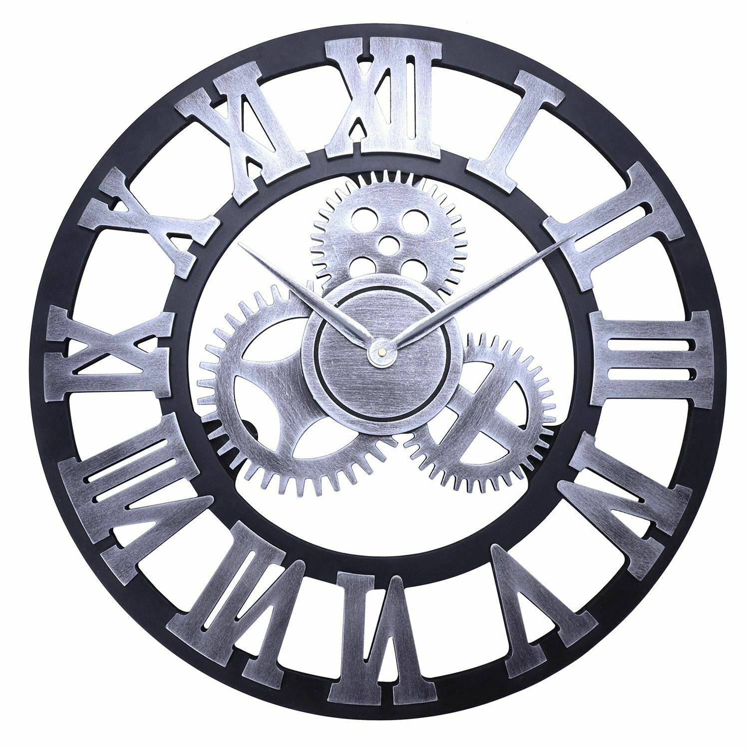 60CM LARGE WALL CLOCK OUTDOOR GARDEN BIG ROMAN NUMERALS GIANT OPEN FACE METAL PT