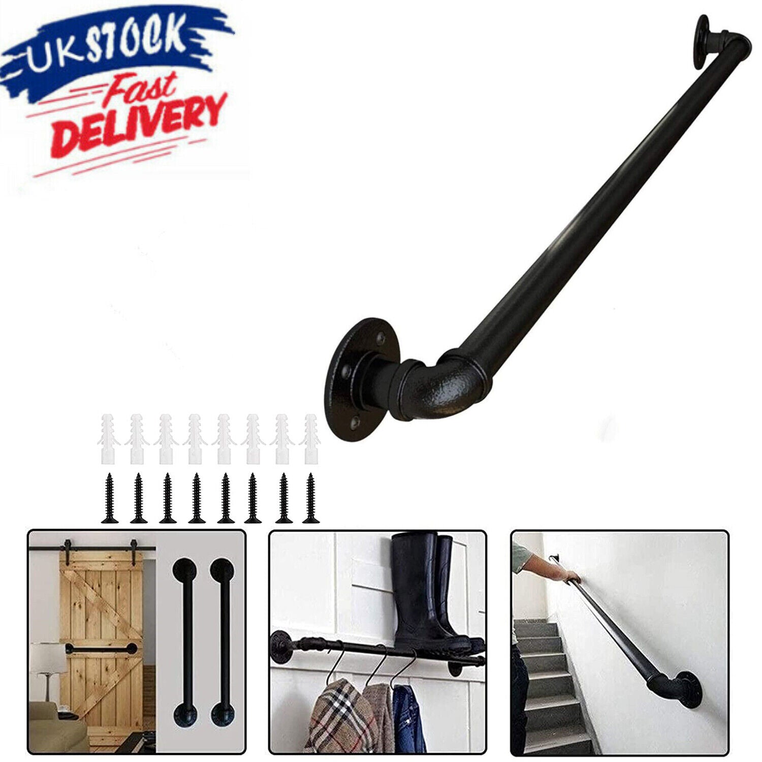 60cm Painted Iron Stair Handrail Grab Bar Handle Balustrade Staircase Banister