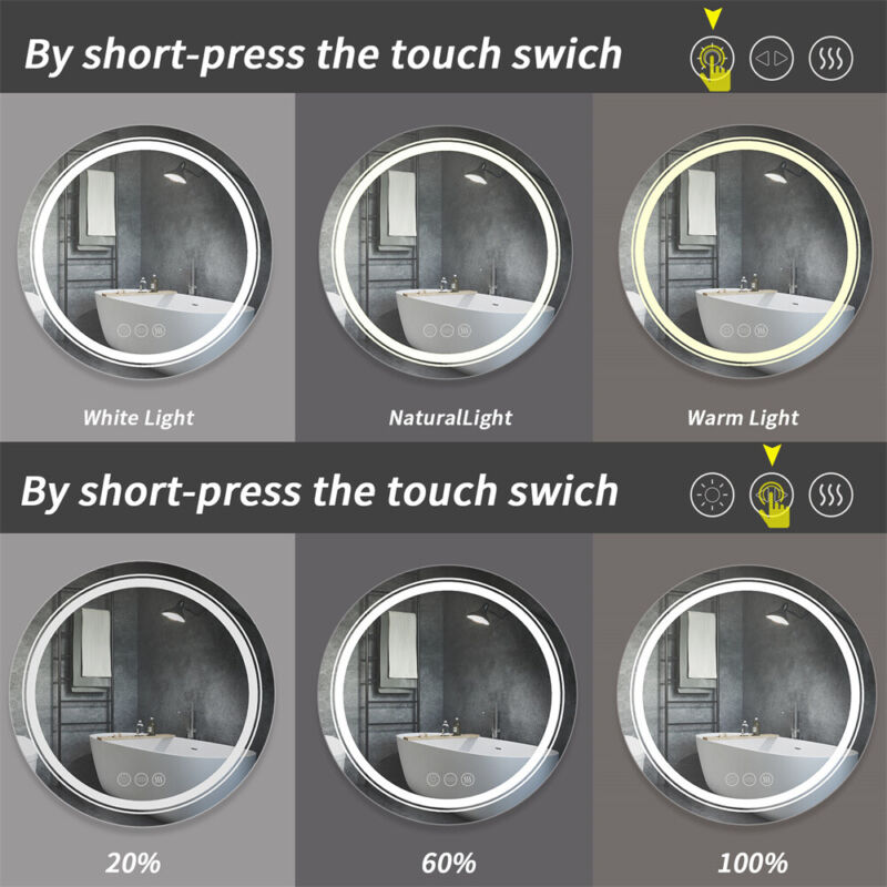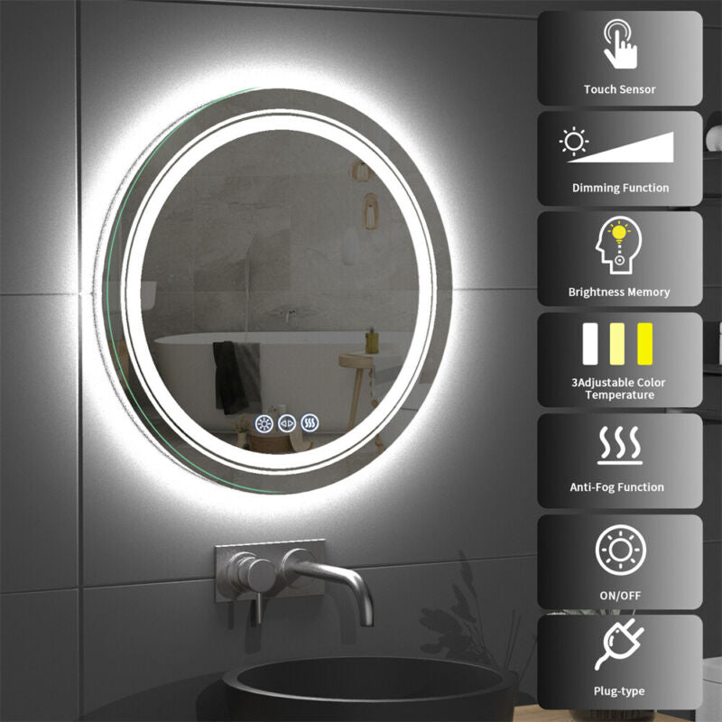 60cm Round Illuminated Bathroom Mirror Makeup Shaving Hairdressing Vanity Mirror