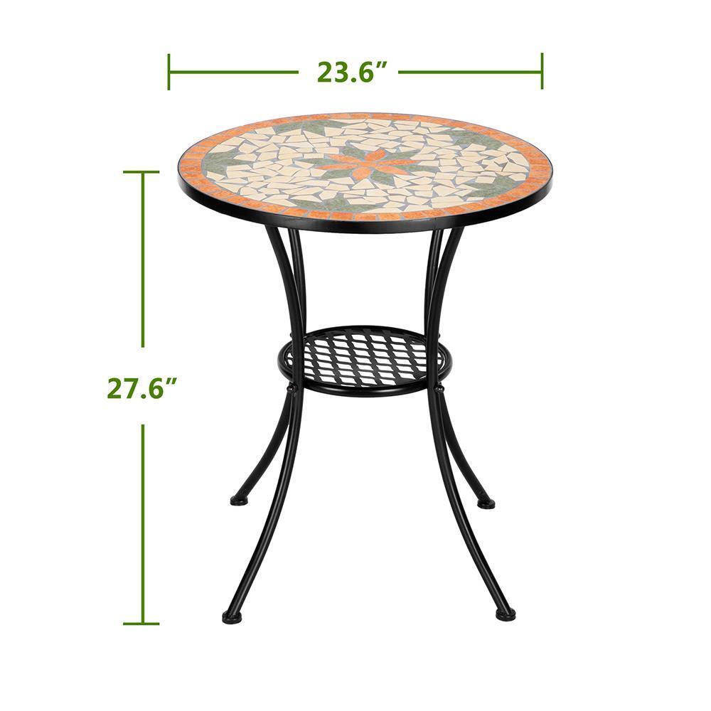 60CM Round Mosaic Garden Coffee Table Decorative Outdoor Dining Furniture 50lbs