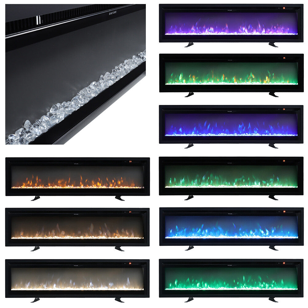 60inch Electric Black Wall Insert LED Fireplace Fire Freestand With Feet UK