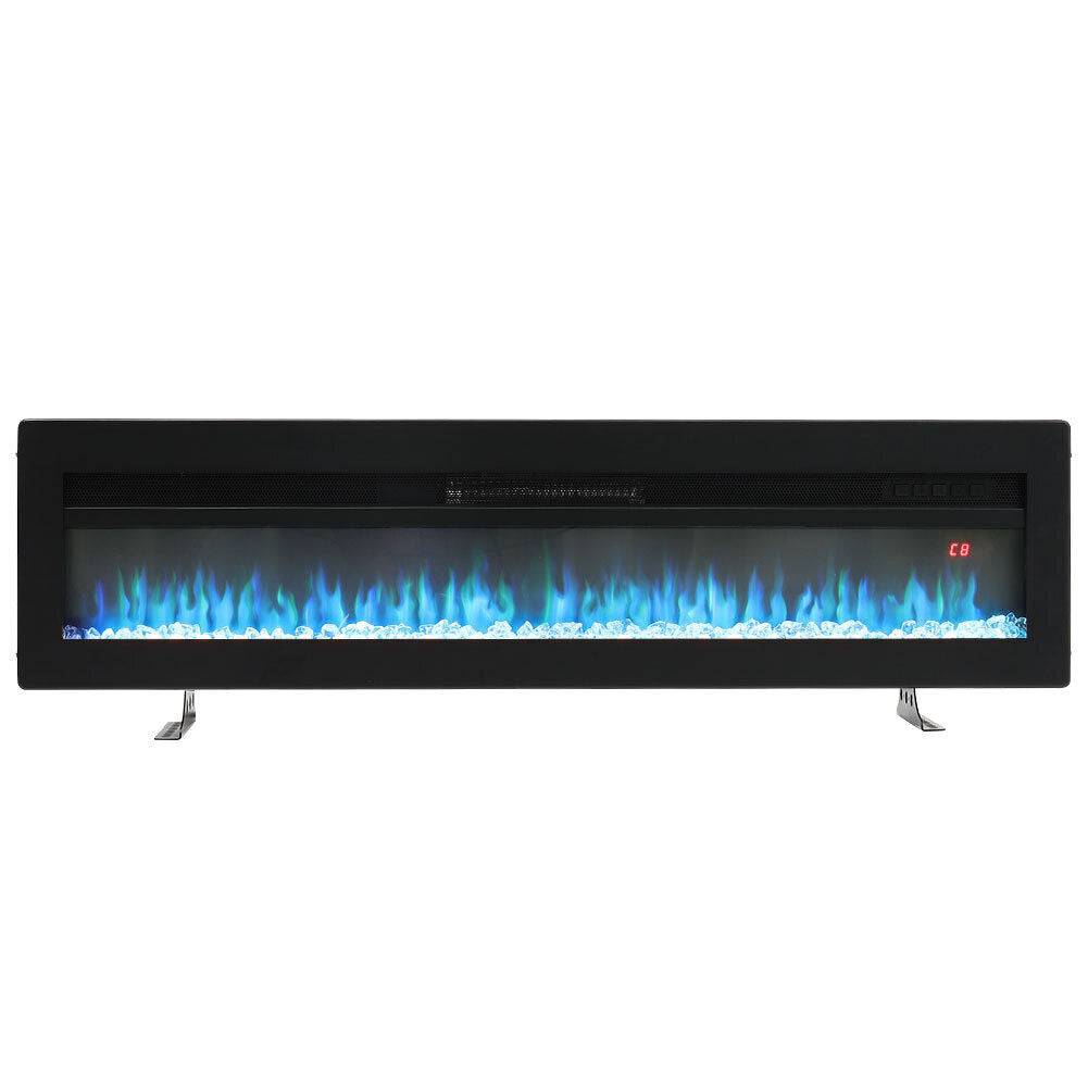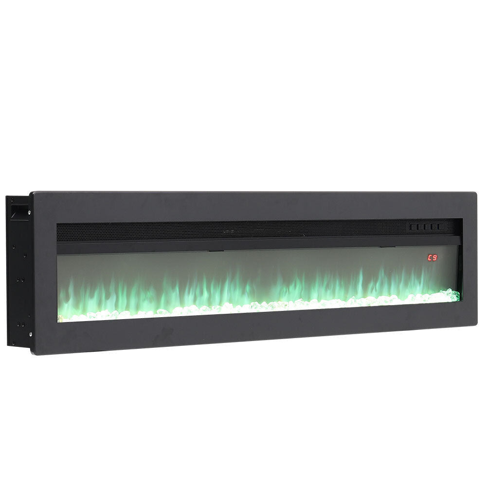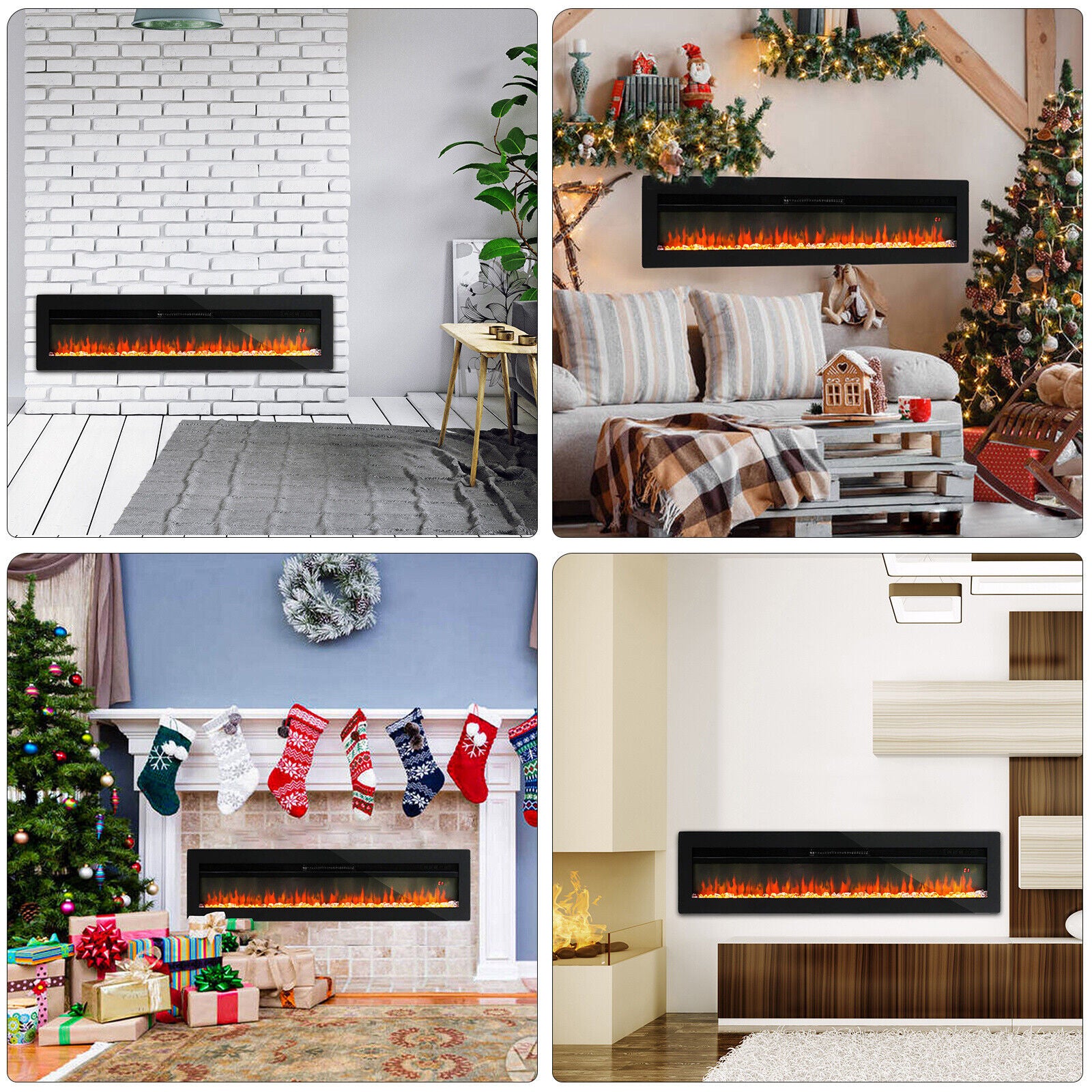 60inch Electric Fireplace Crystals LED Fire Heater Inset Wall/Freestanding Black