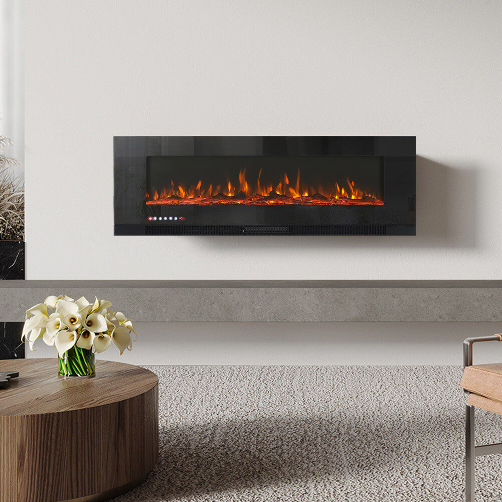 60Inch Electric Heater LED Fireplace Wall Mounted Inset Standing Media Log Flame