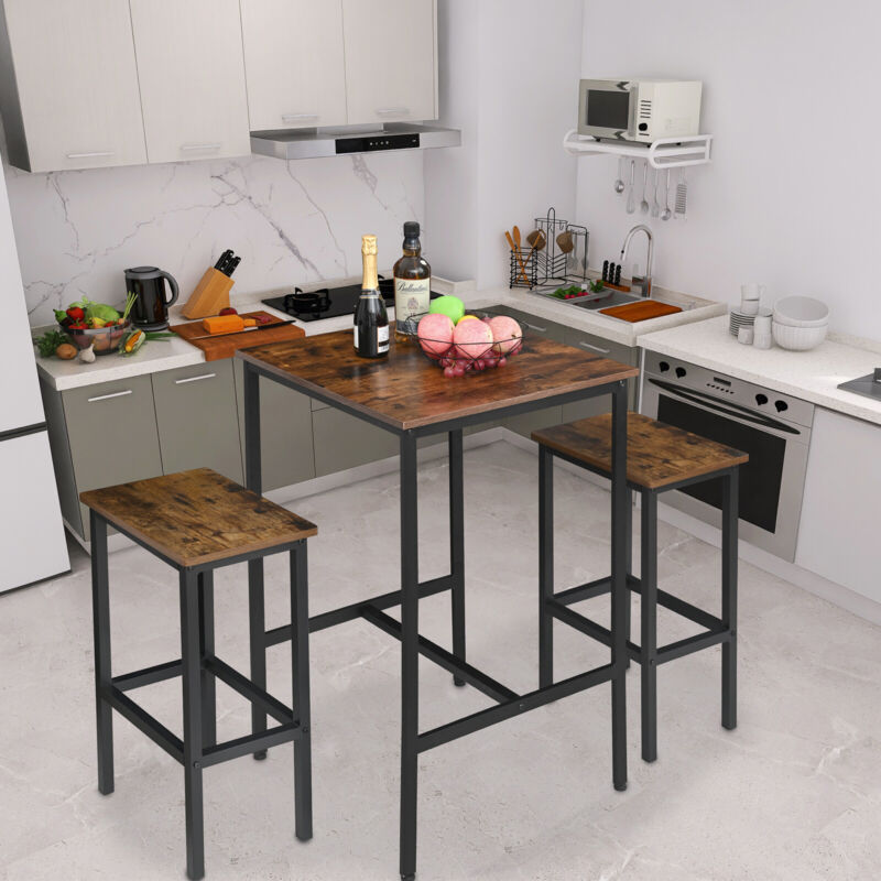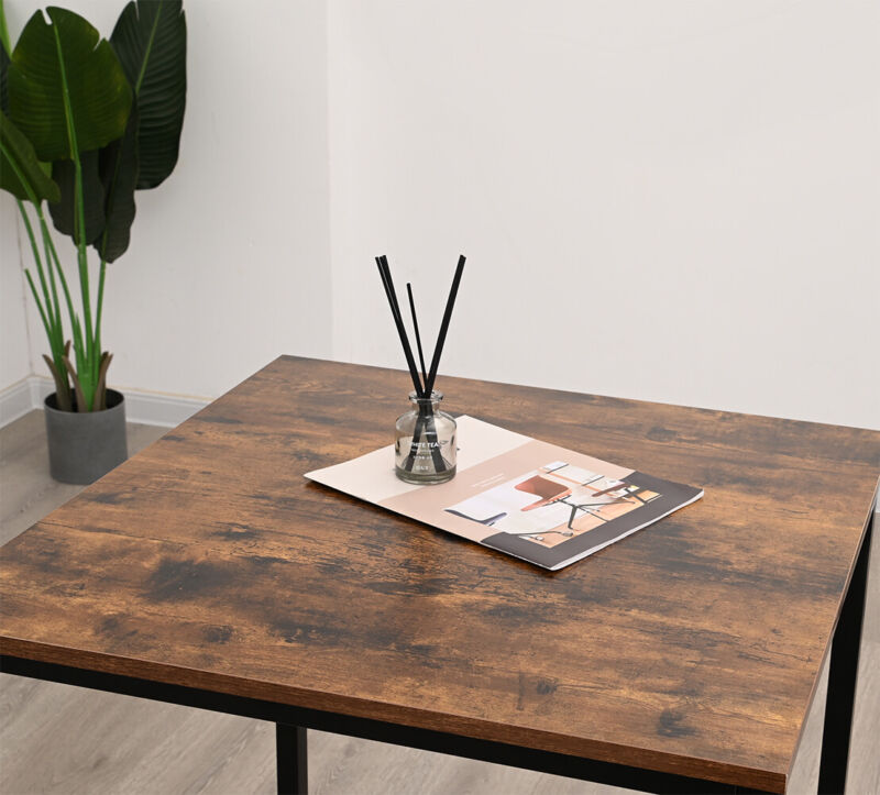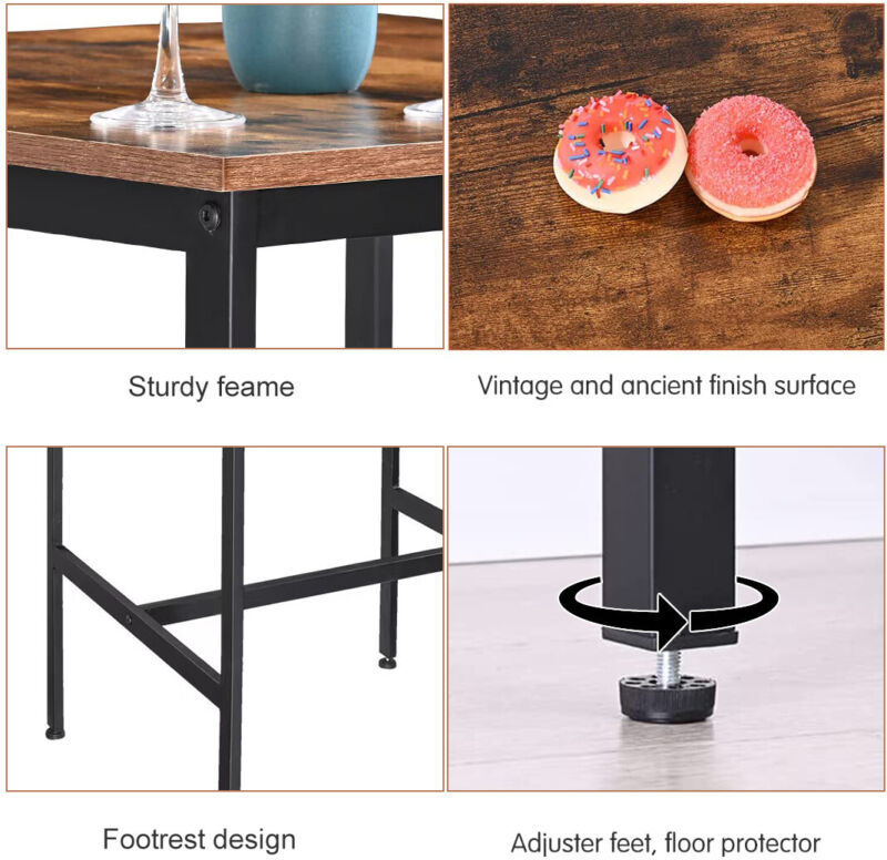 60x60cm Bar Table Metal Square Dining Table Coffee Table w/Brown Wooden Top