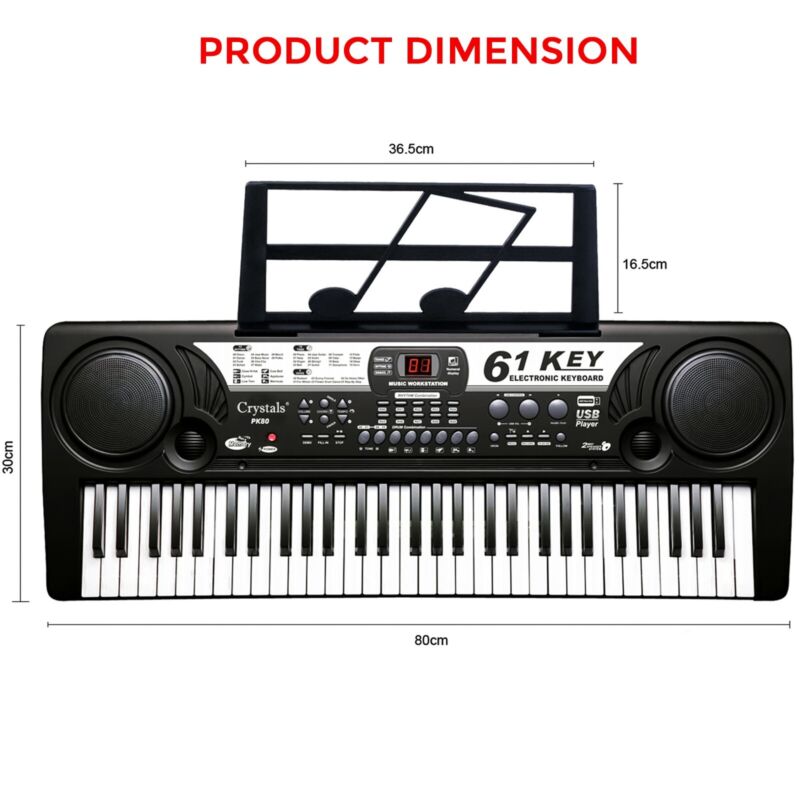61 Keys Electronic Keyboard Digital Music Piano Instrument, Microphone & Stand