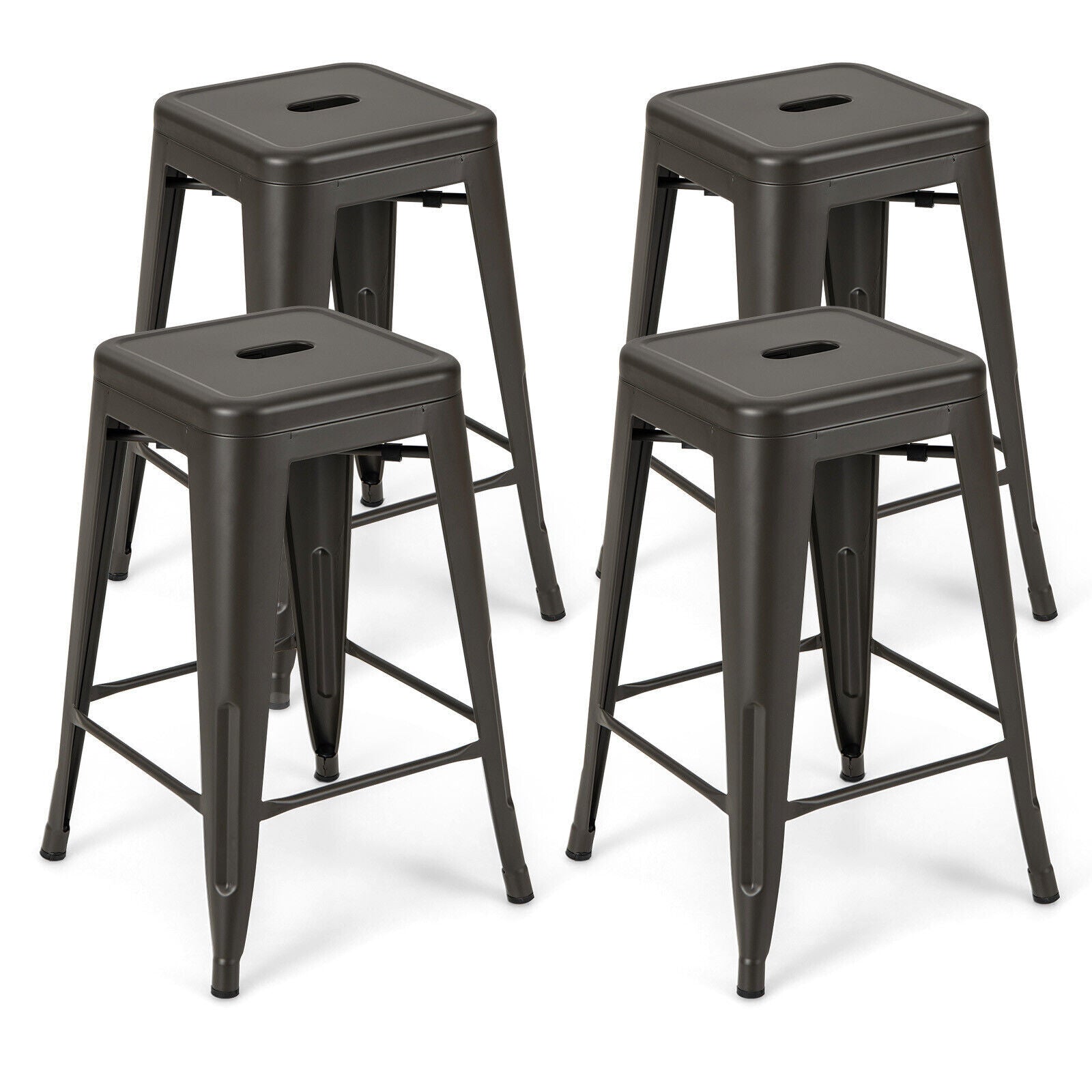 61CM Bar Stools Set of 4 Stackable Counter Height Metal Stools w/ Handing Hole