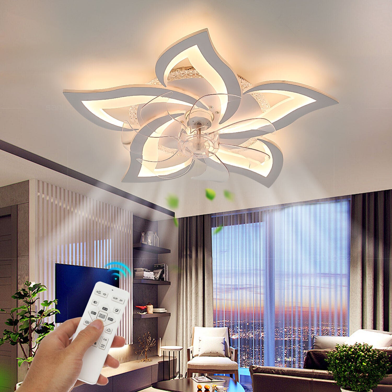 62CM LED Ceiling Fan Light 72W Dimmable Chandelier 6 Speed With Remote Khlqncysx