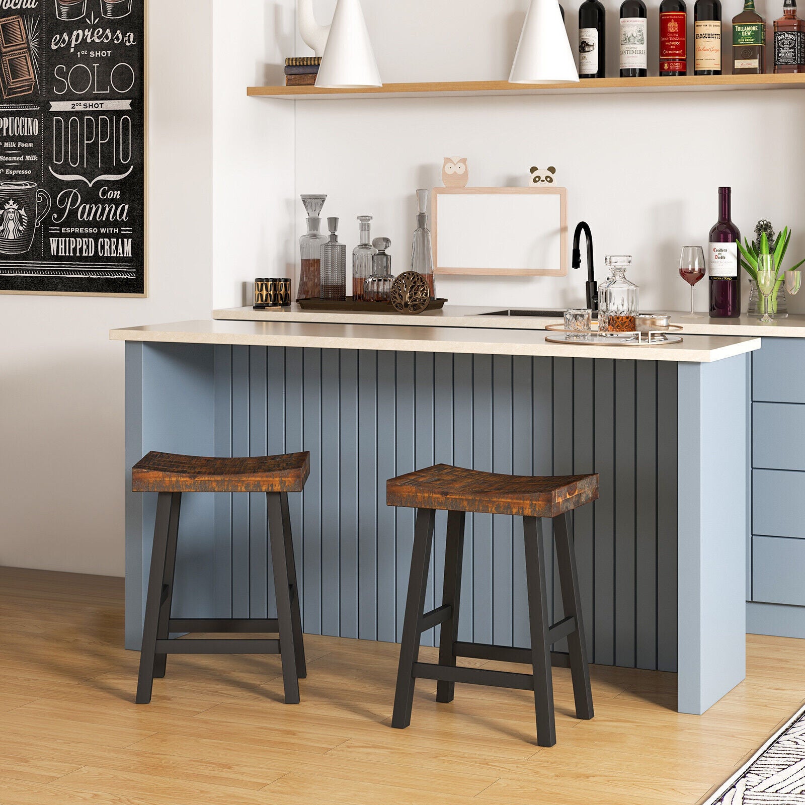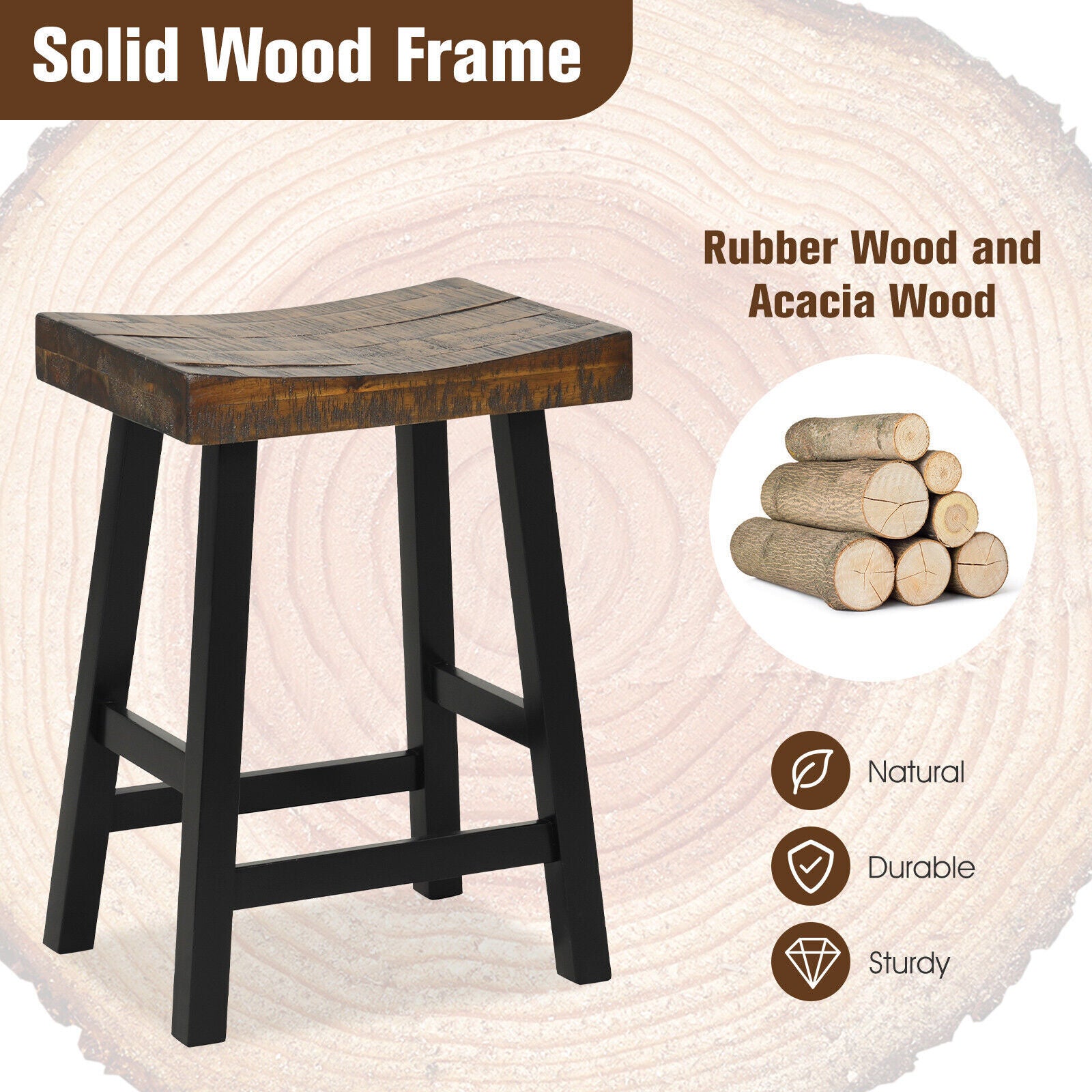 62CM Saddle Bar Stools Set of 2 Counter Height Barstools Dining Chairs Brown