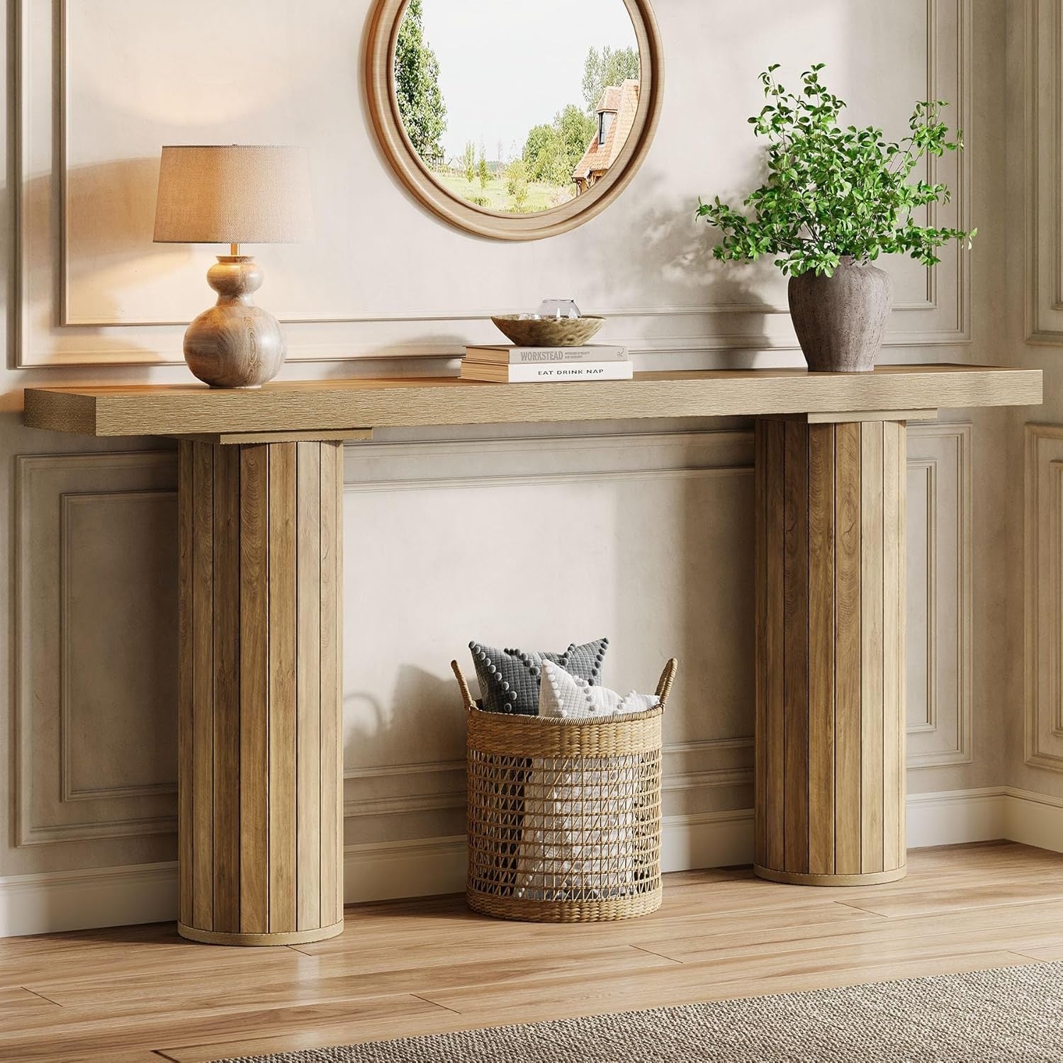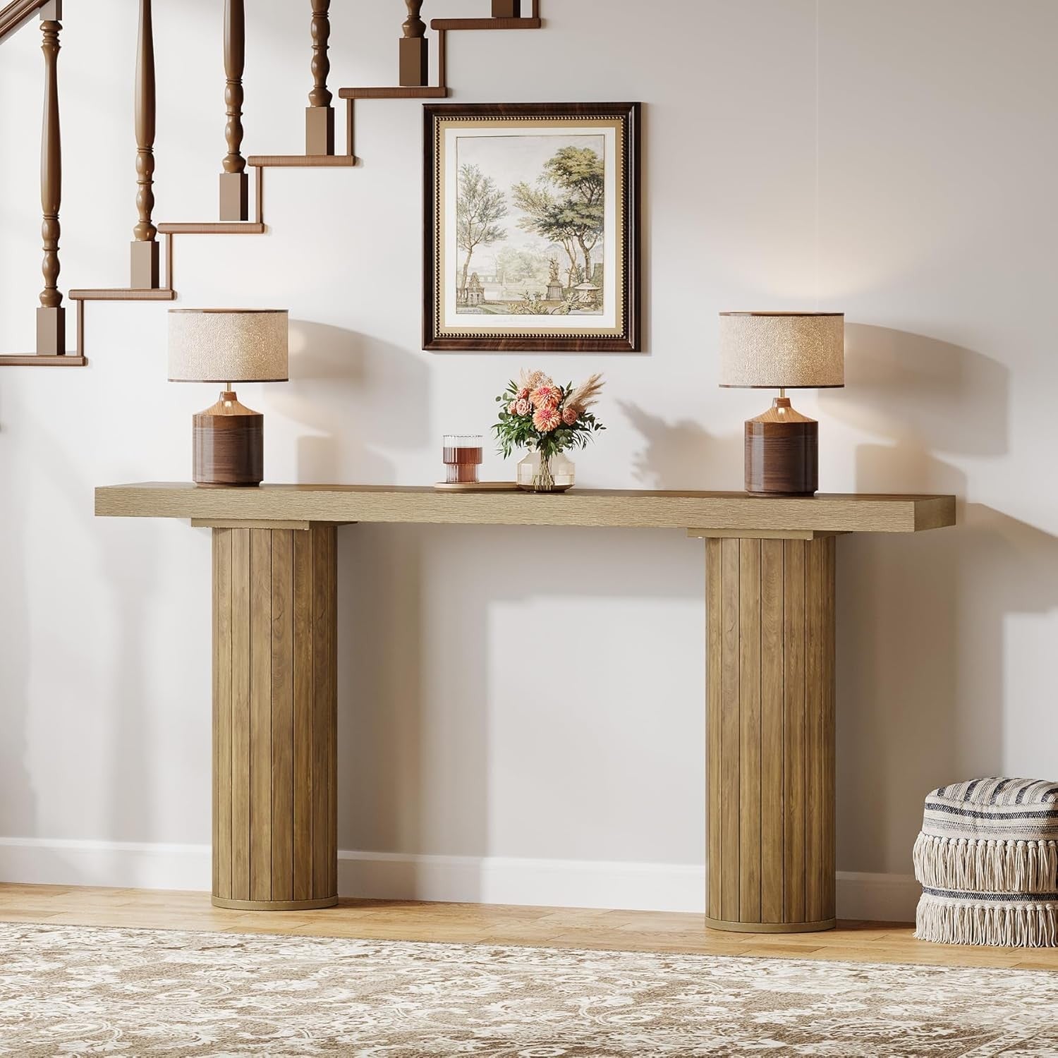 63-Inch Farmhouse Extra Long Console Table, Wooden Rectangular Foyer Sofa Table