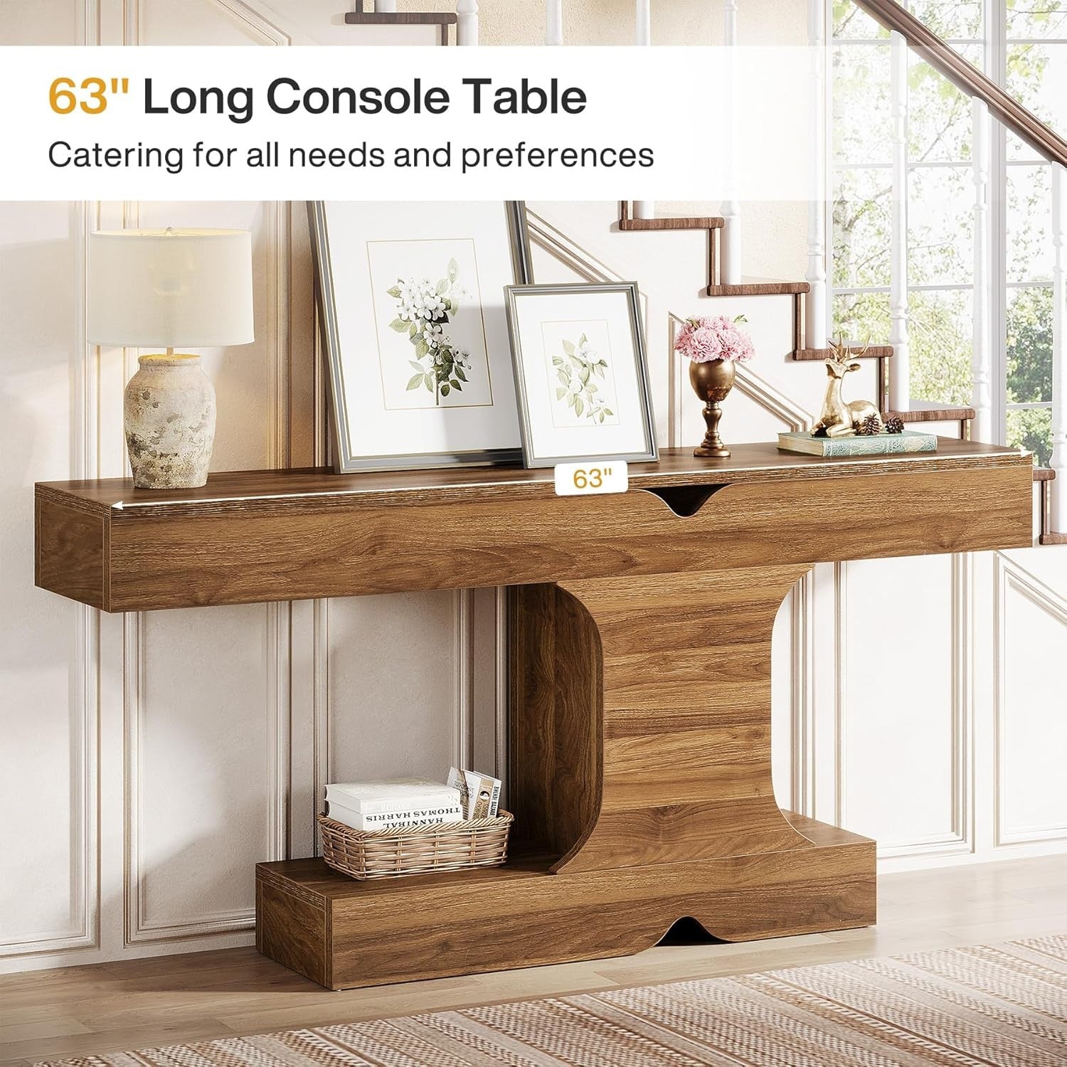 63-Inch Long Console Table, Modern Wood Entryway Sofa Table for Living Room