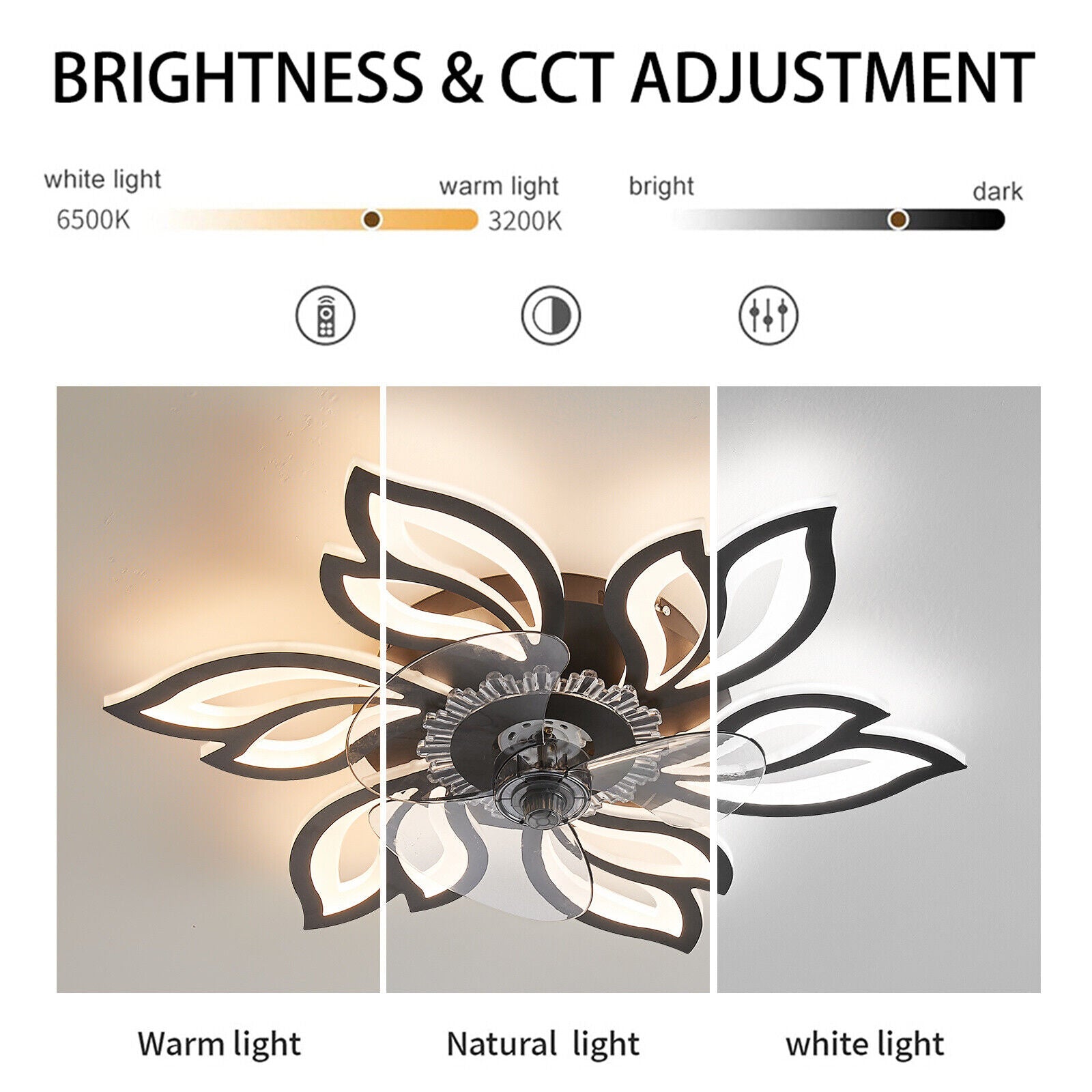 63cm 3 Blades Dimmable Ceiling Fan with Lighting LED Light APP Bluetooth Control