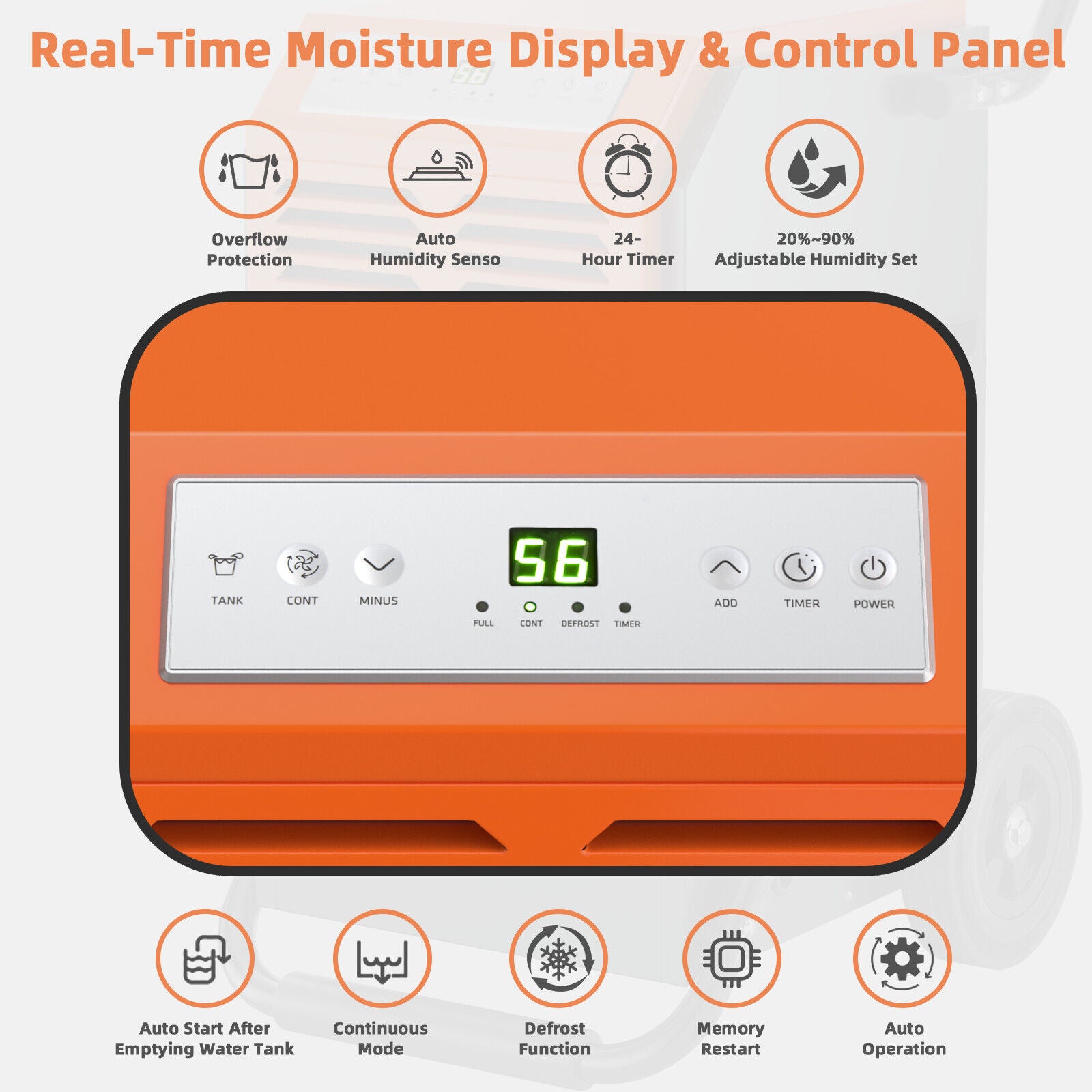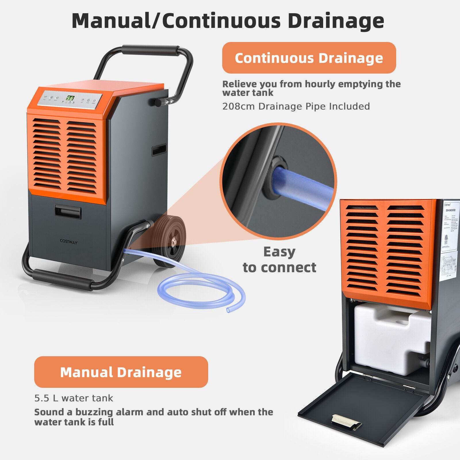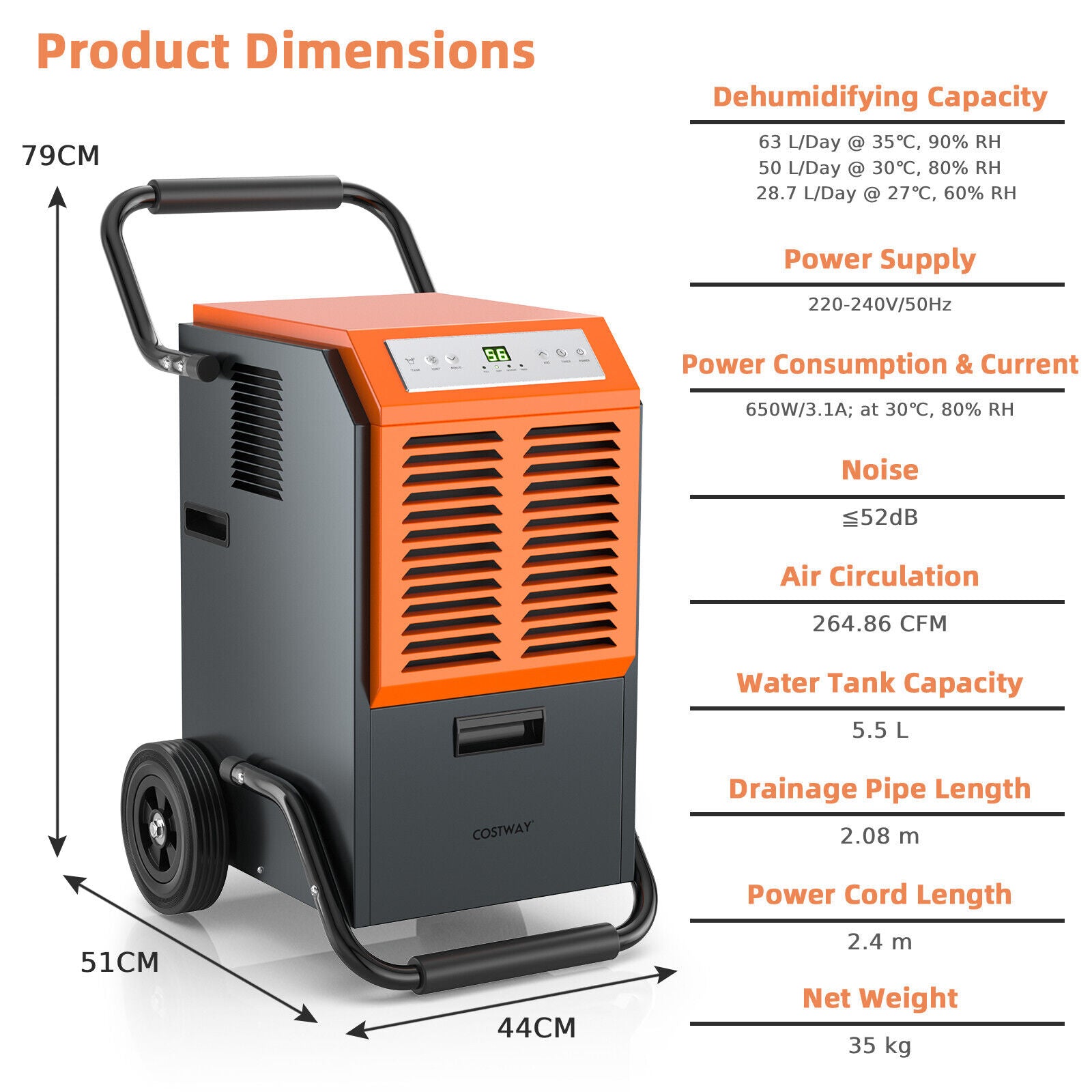 63L Portable Commercial Grade Dehumidifier Industrial Dehumidifier w/ Wheels