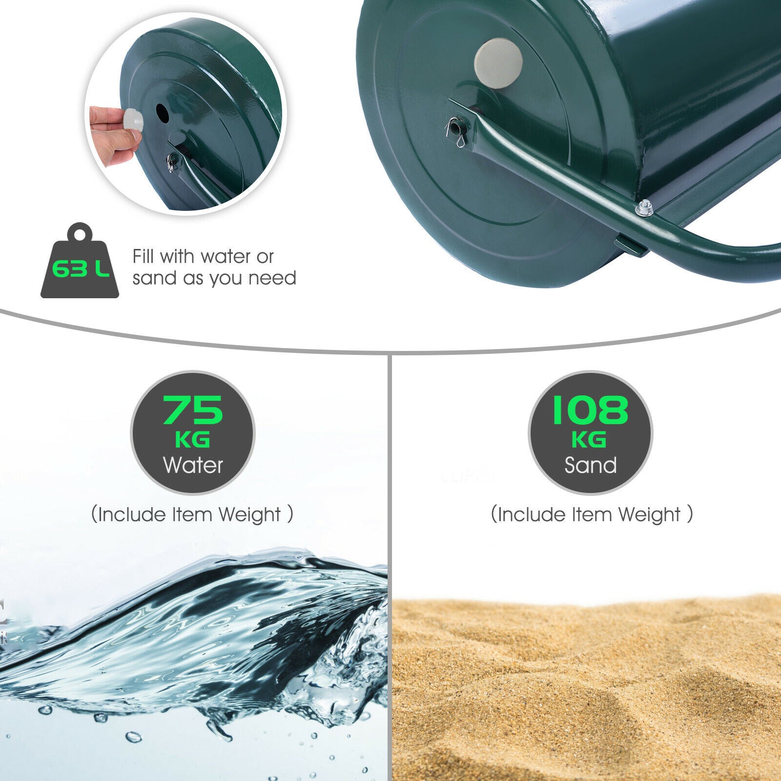 63L Steel Garden Lawn Roller Water Sand Filled Outdoor Grass Roller w/Drain Plug