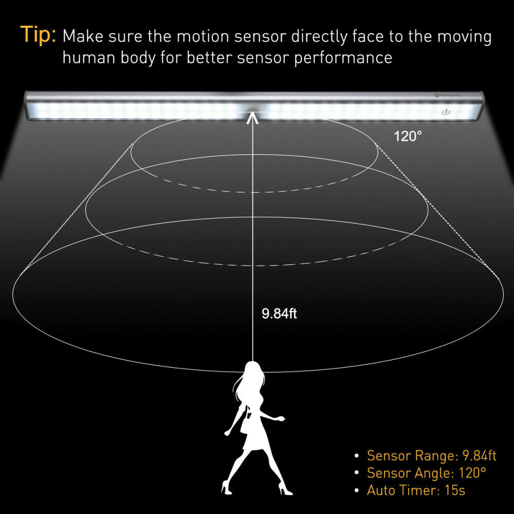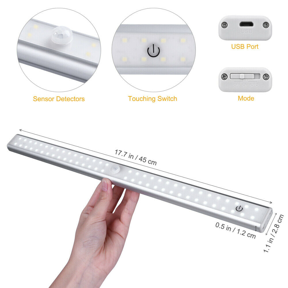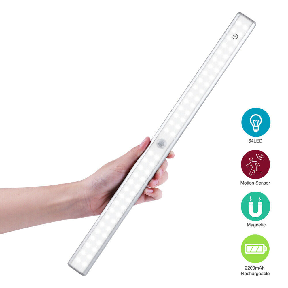 64 LED Closet Light PIR Motion Sensor USB Rechargeable Strip Cabinet Lamp UK