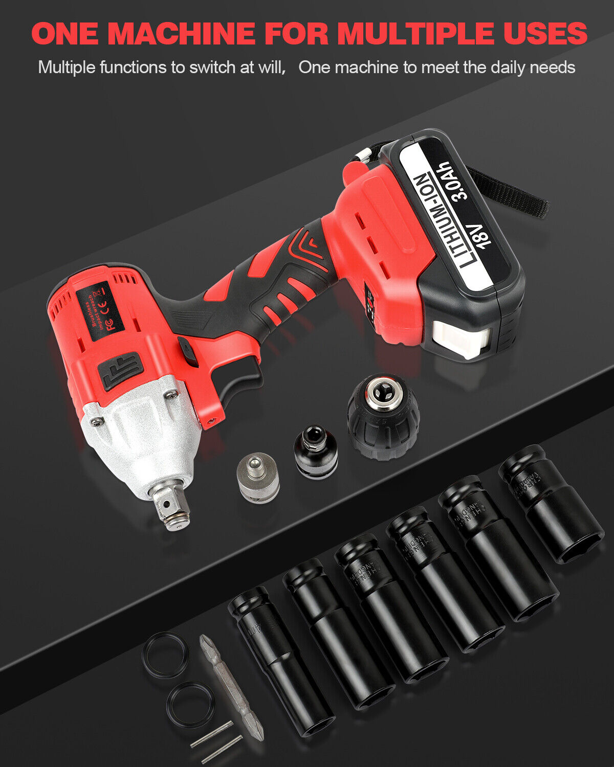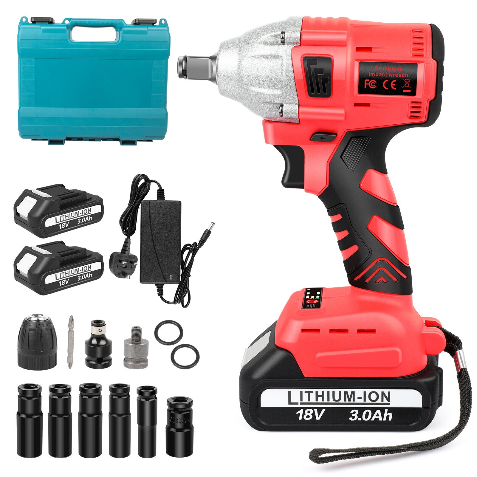 1xAttachments 1xImpact Wrench 2xBatteries 1xCharger 1xCase