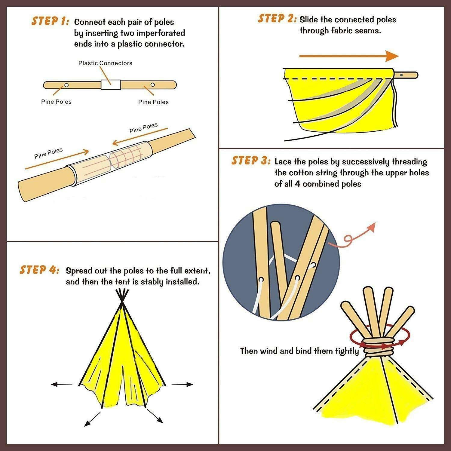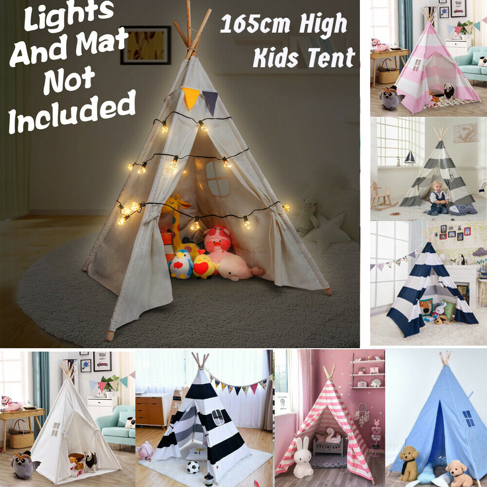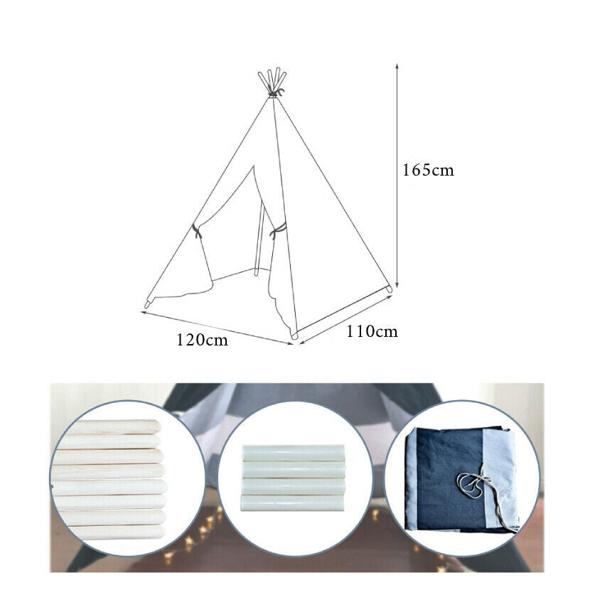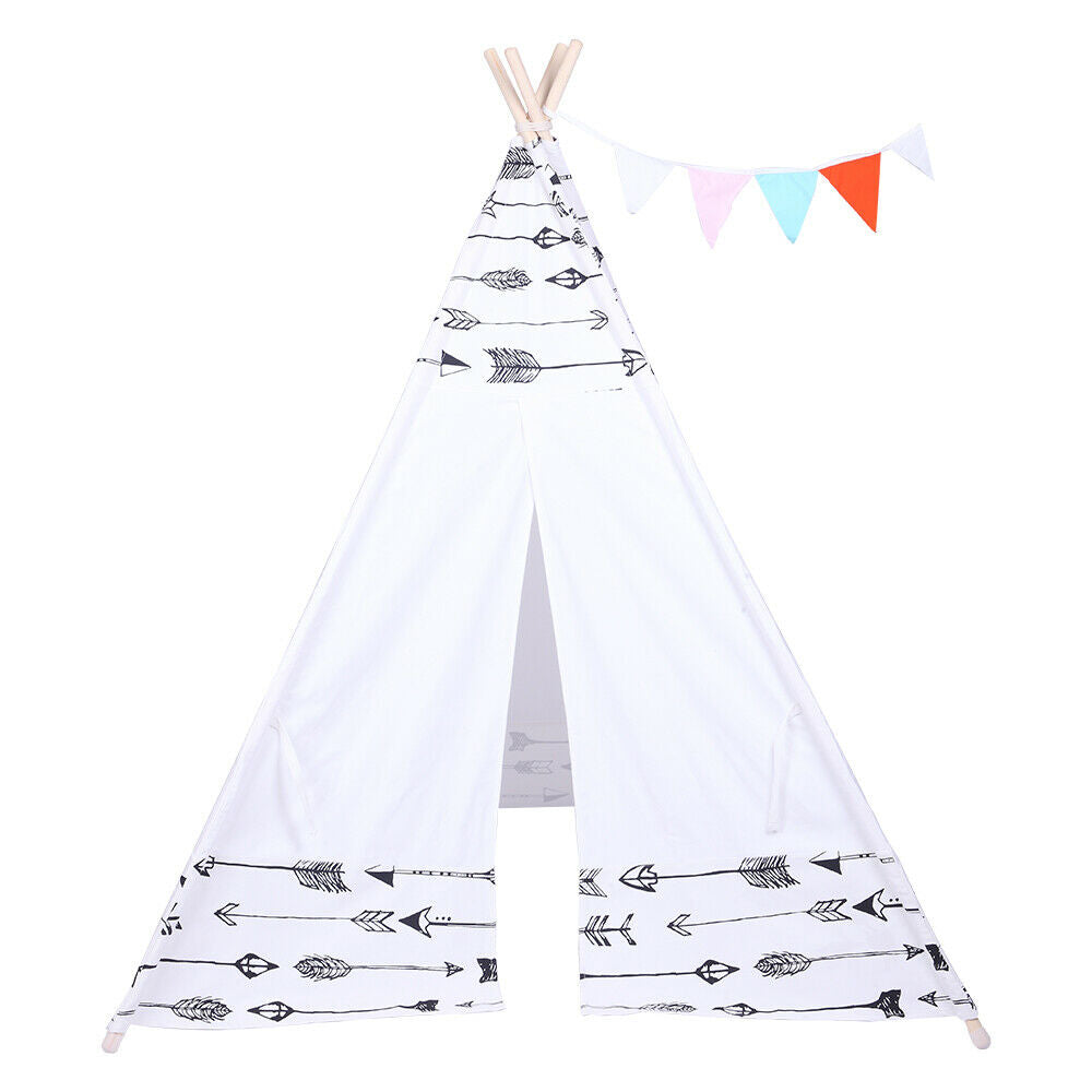65"H Children's Canvas Indian Teepee Play Tent Wigwam Indoor Outdoor Play House