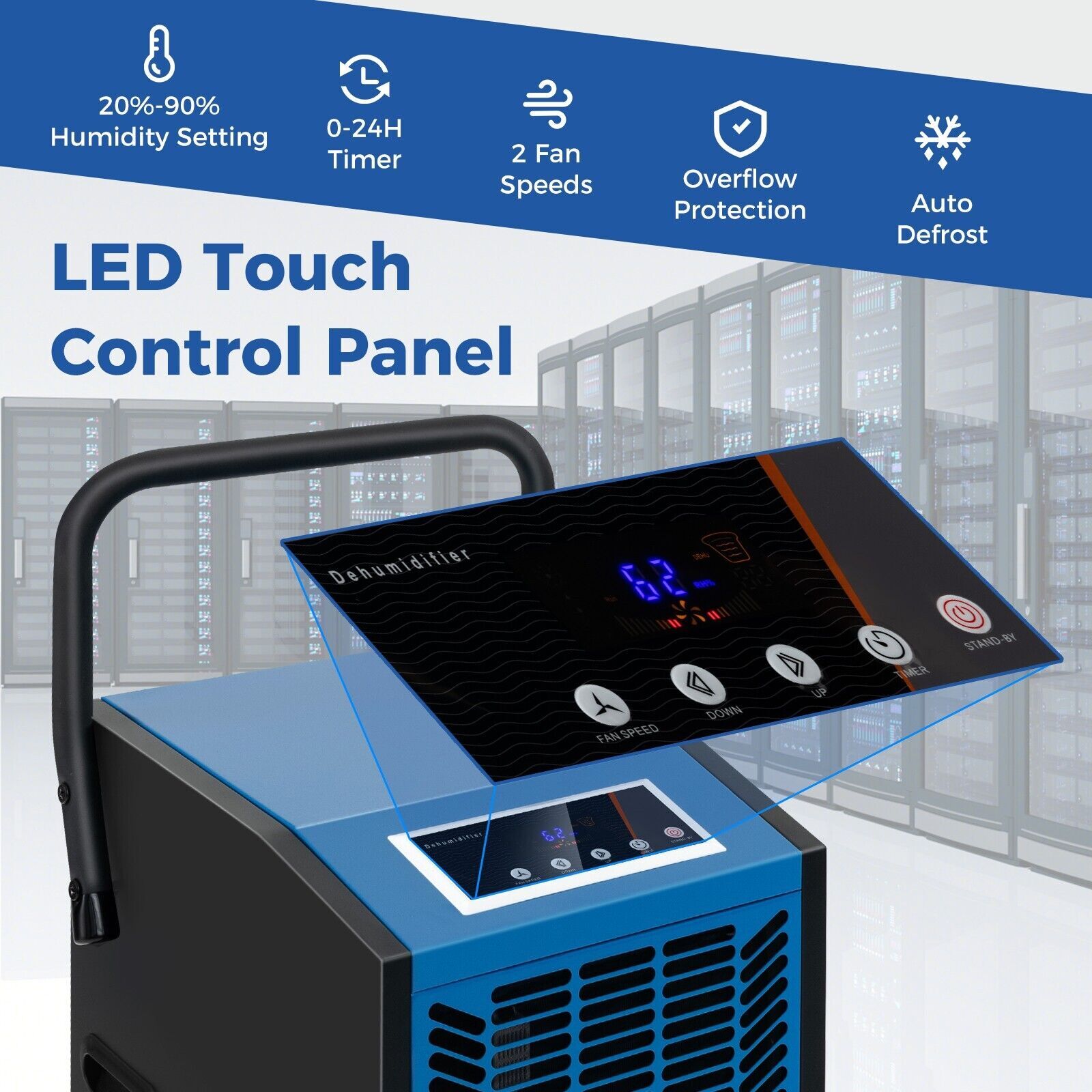 66L Commercial Dehumidifier Industrial Crawl Space Dehumidifier-Blue