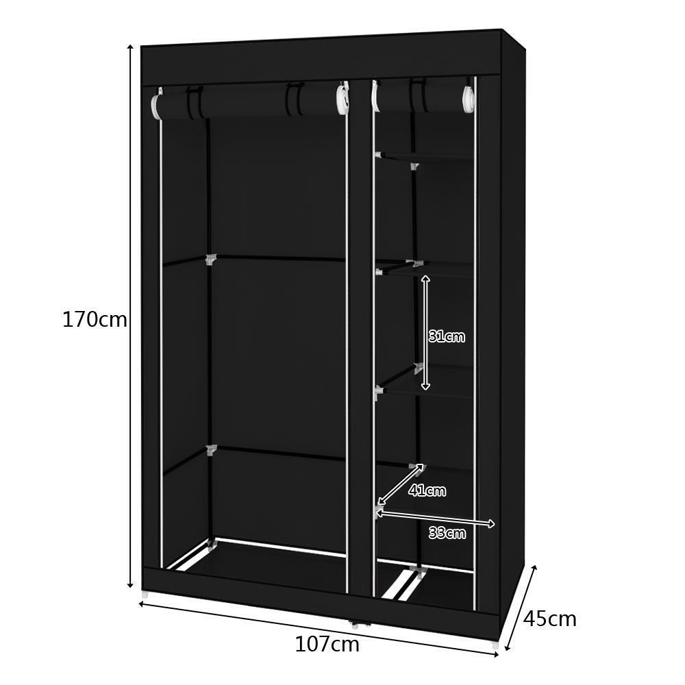 67" Tall Fabric Wardrobe Portable Closet With Hanging Rail Storage Shelving