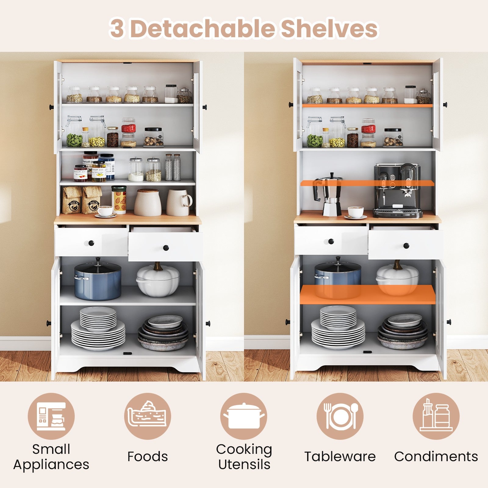 67" Tall Kitchen Storage Cabinet w/Pull-out Drawers-White