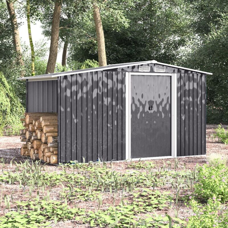 6ft*8ft Sliding Doors Apex Garden Lawn Tool Shed Firewood Organizer Steel House