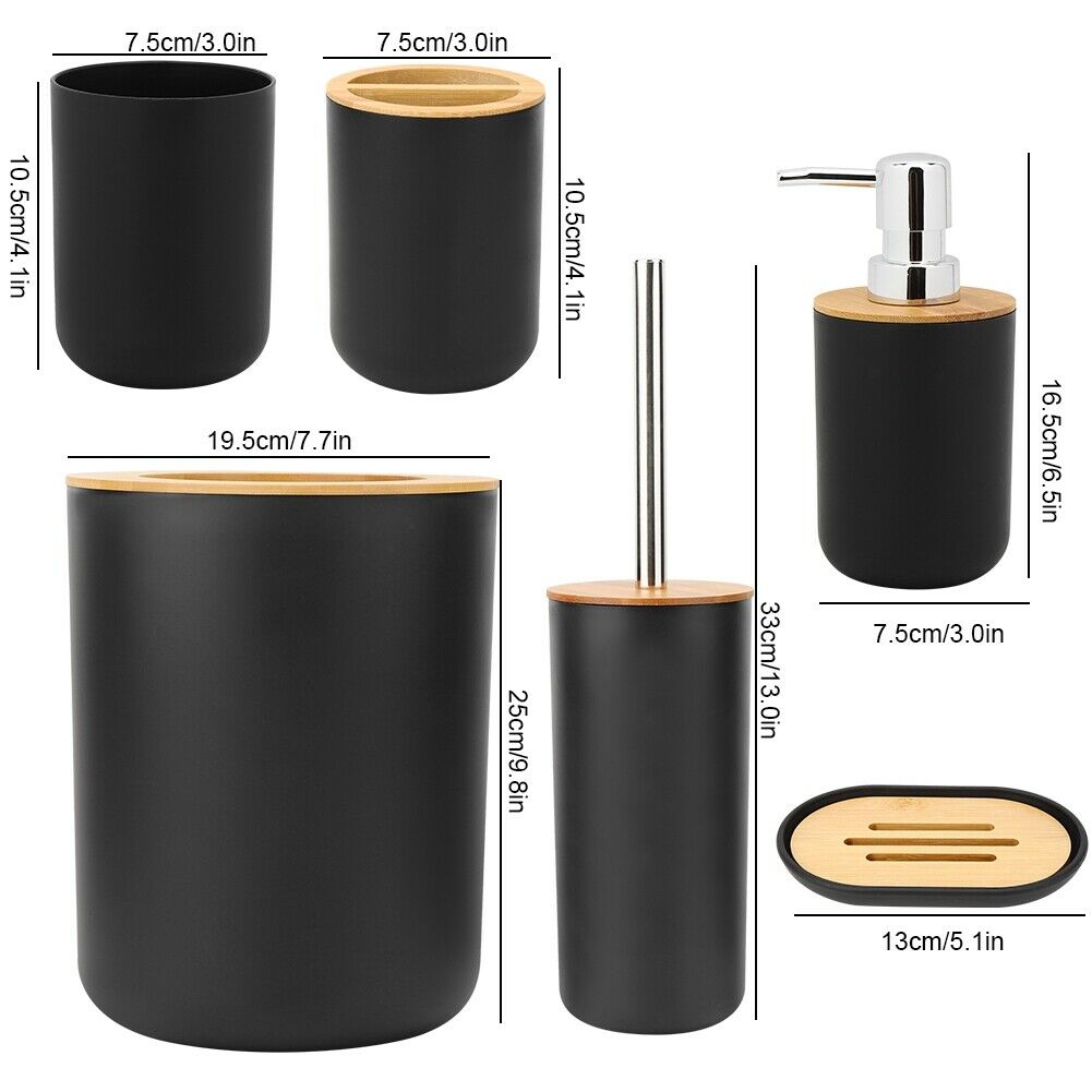 6Pcs Bathroom Set Toilet Brush Holder Toothbrush Cup Soap Dispenser Soap Dish