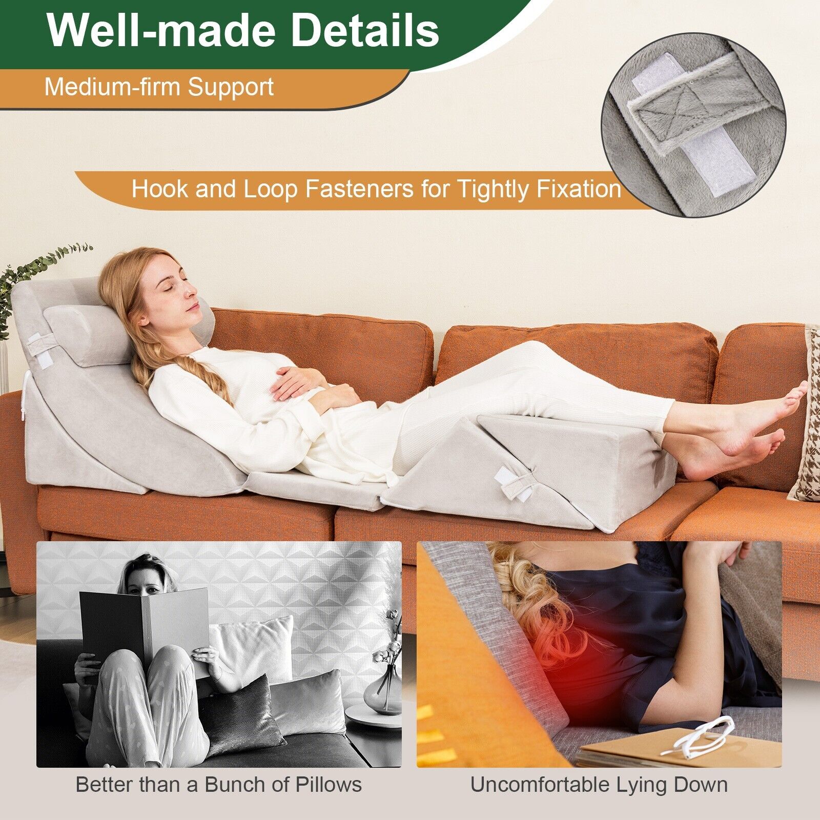 6PCS Bed Wedge Pillow Set Orthopedic Adjustable Foam Pillow for Pain Relief