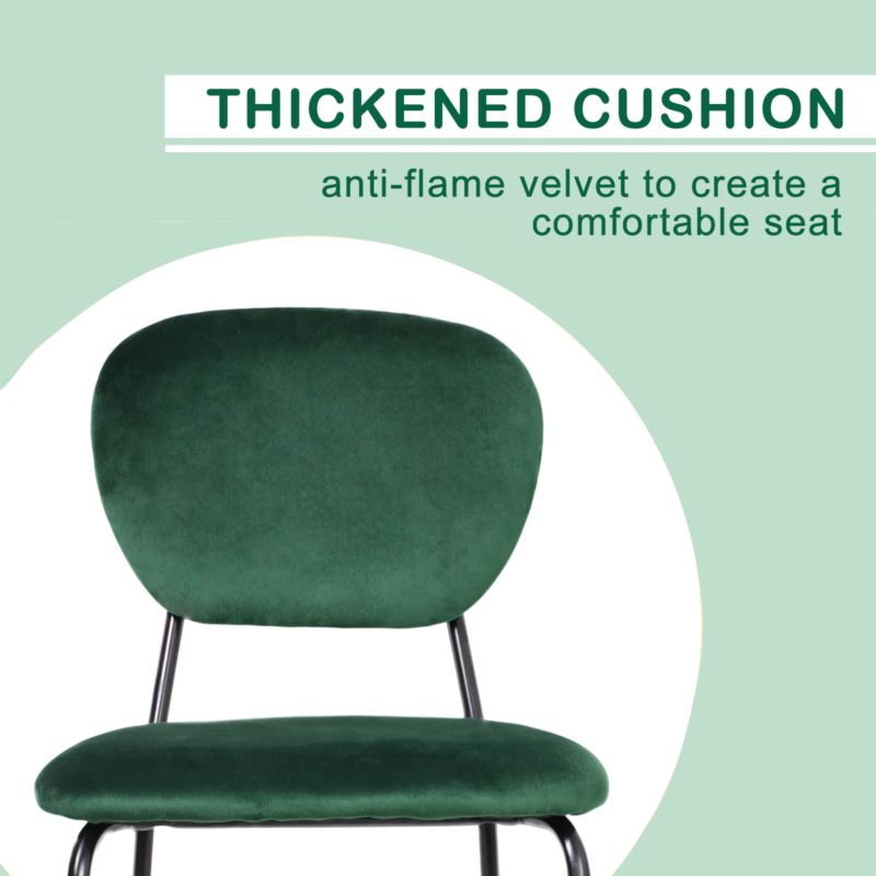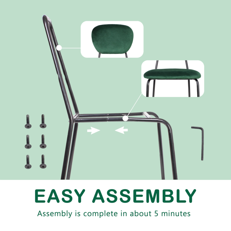 6PCS Dining Chairs Green Velvet Stackable Fabric Chairs Metal Leg Home Office