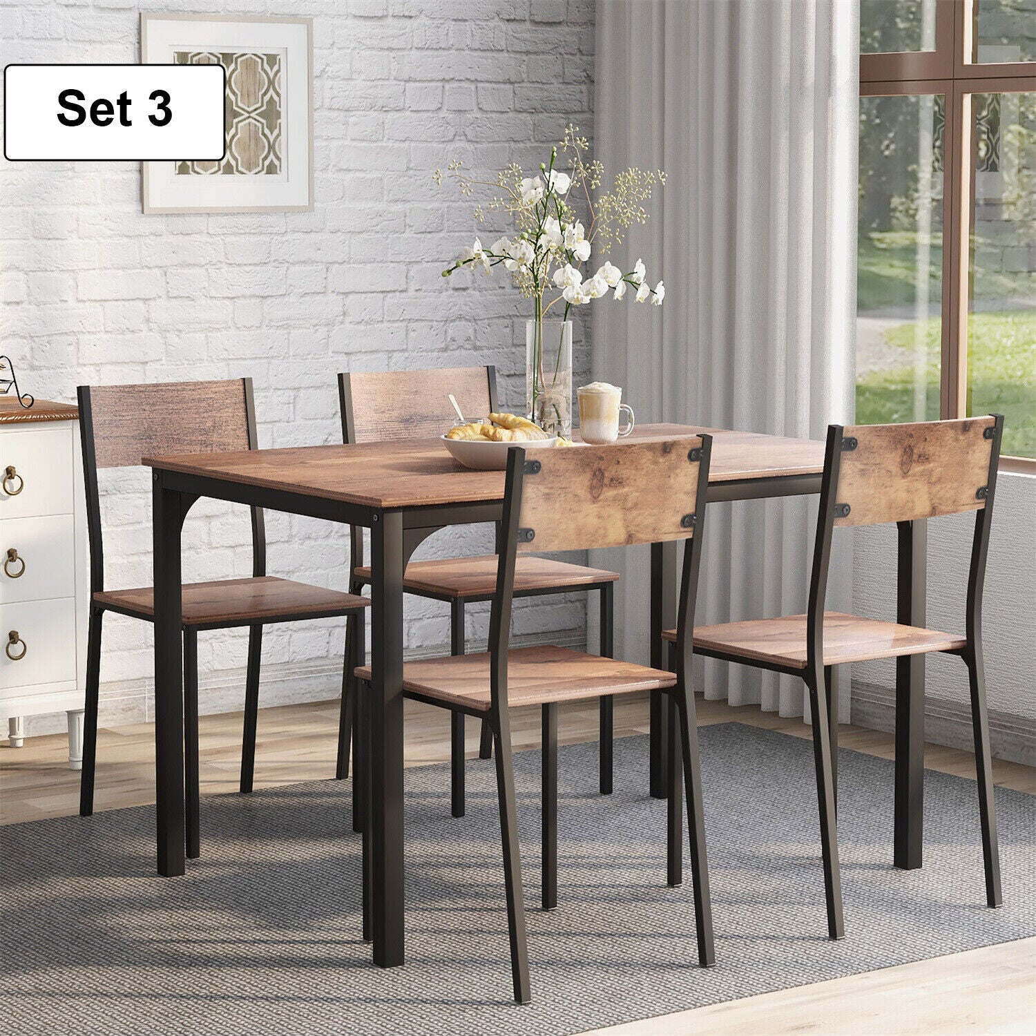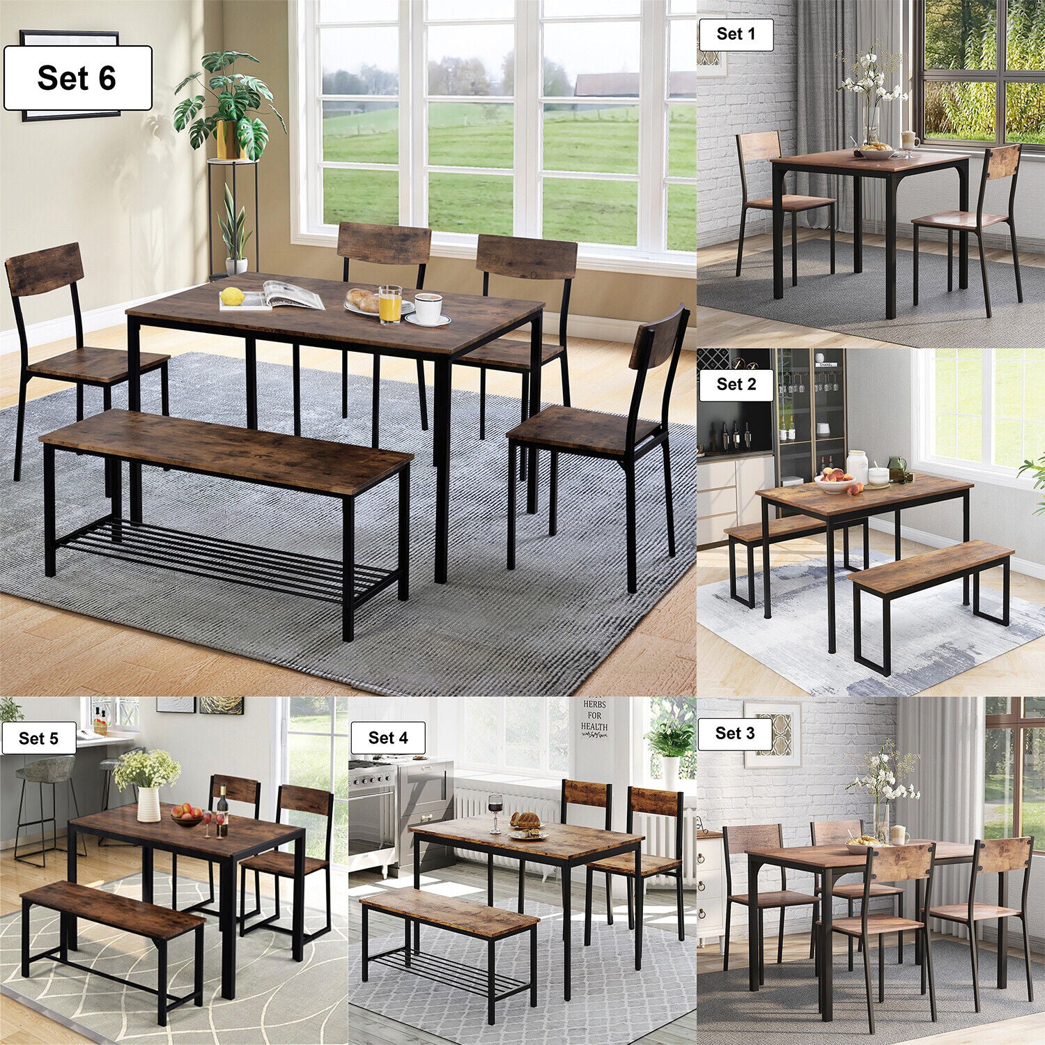 6Pcs Dining Table & Chairs Set Kitchen Furniture With Storage Bench Space-Saving