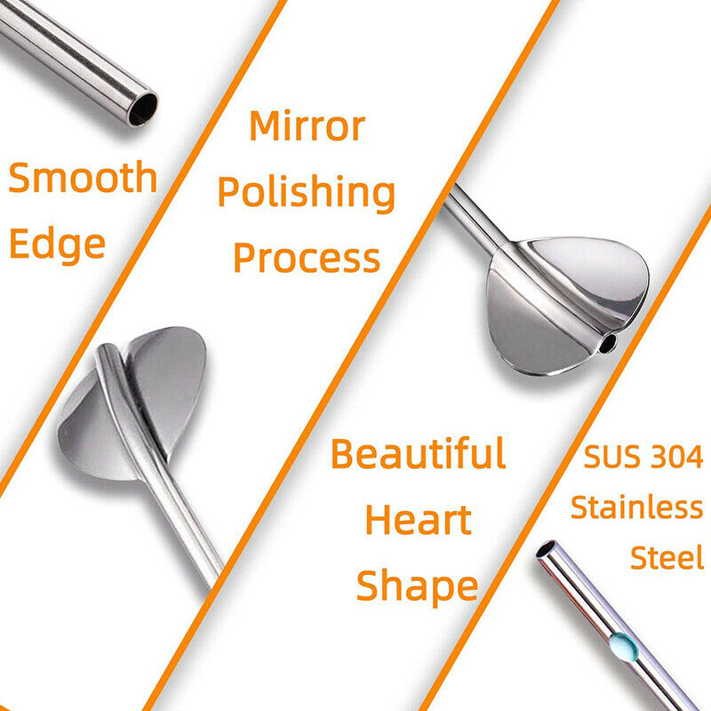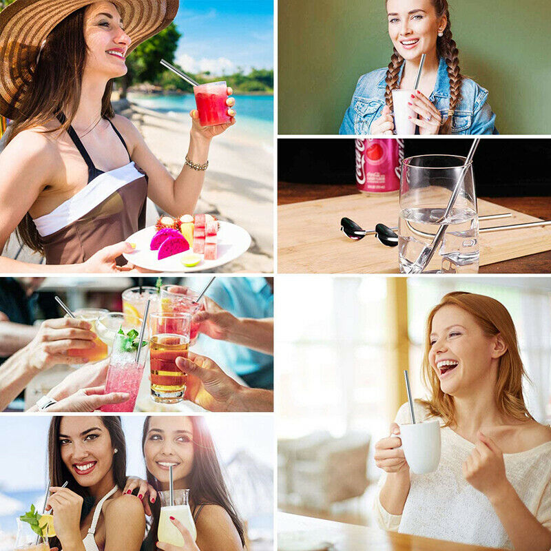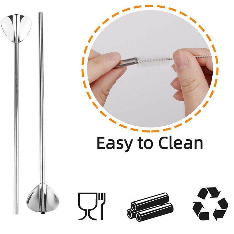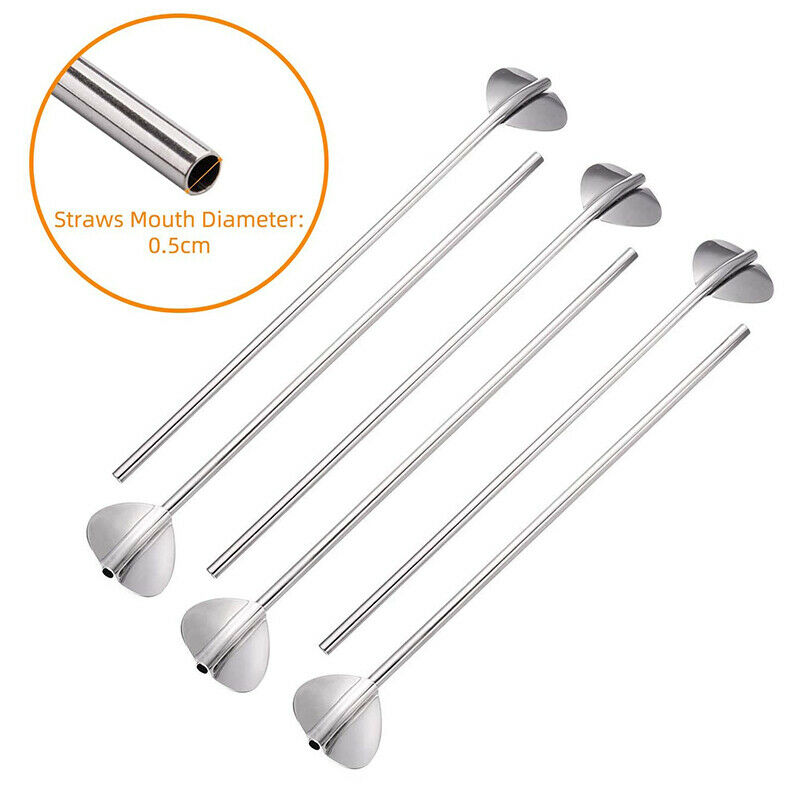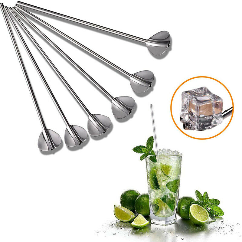 6Pcs Spoon Straws Milkshake Smoothie Drinks Cocktail Stirrers Stainless Steel