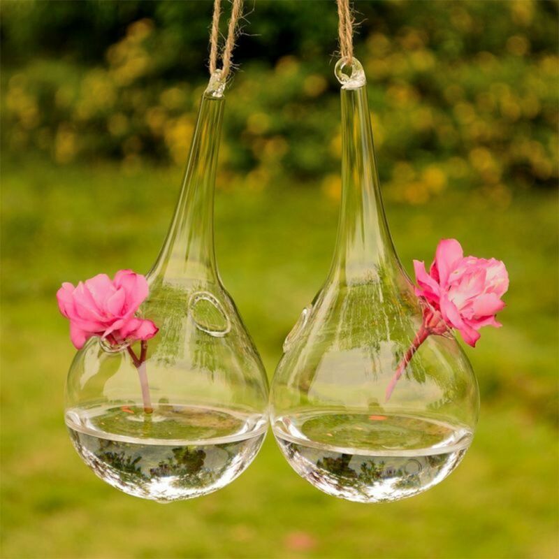 6x Drop Shape Glass Tea light Candle Holders Hanging Home Decor Candlestick UK