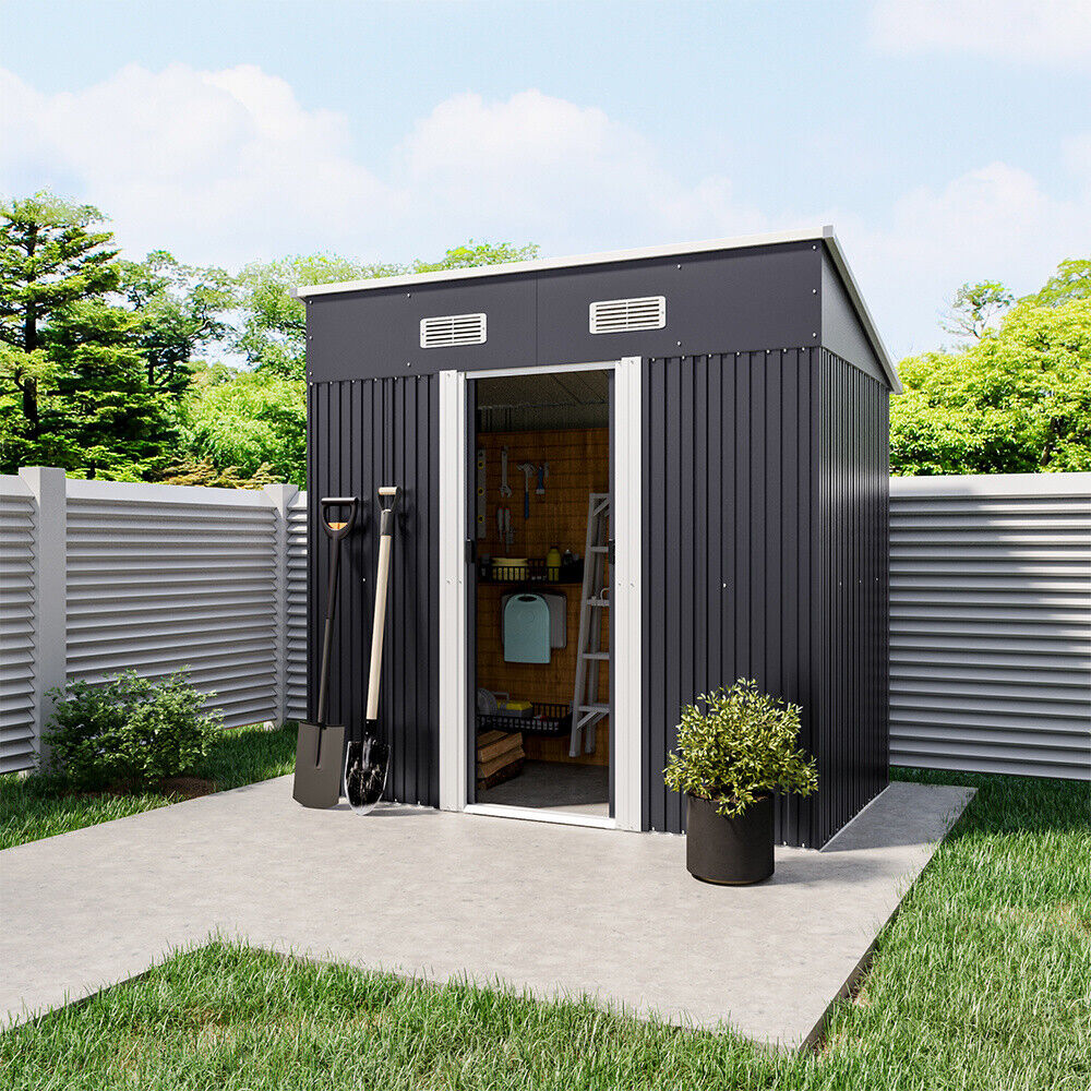 6x4FT Galvanized Steel Sheds Outdoor Storage Metal w Sliding Door Foundation Kit
