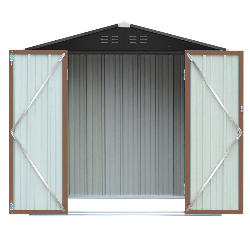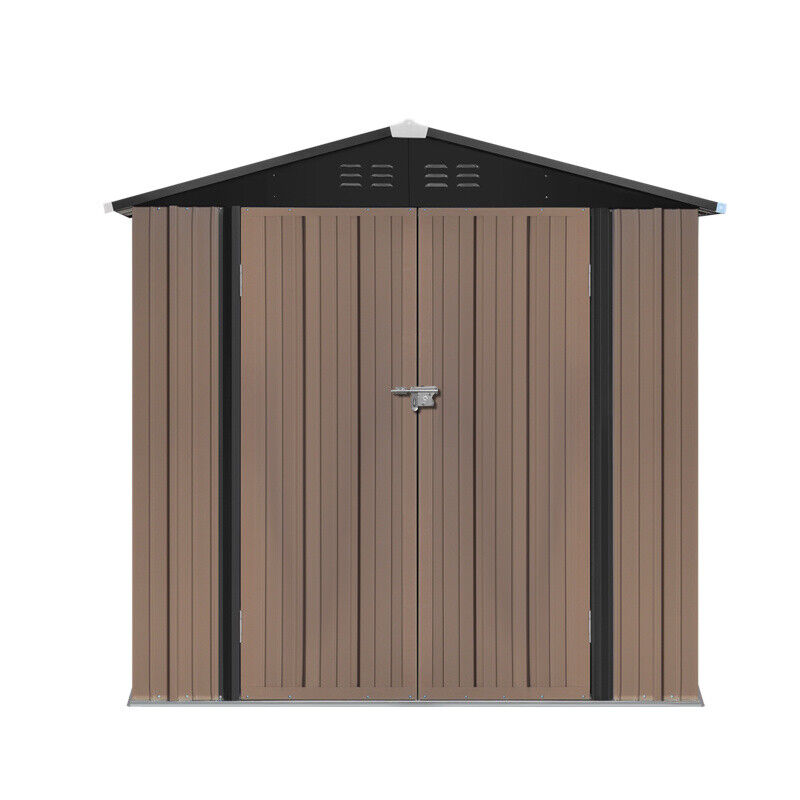 6X4FT Metal Garden Shed Wood Effect Tool Storage Outdoor 2 Doors FREE FOUNDATION