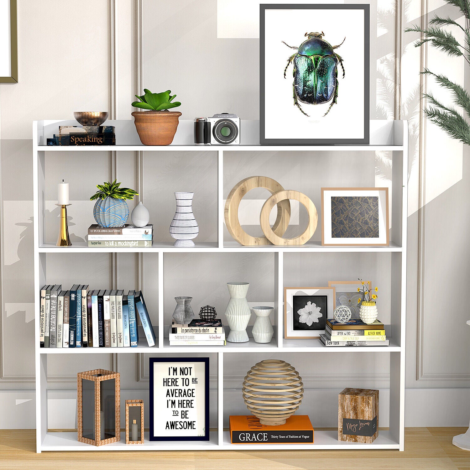 7 Cube Wooden Bookcase Shelving Display Shelves Storage Unit Wood Shelf UK
