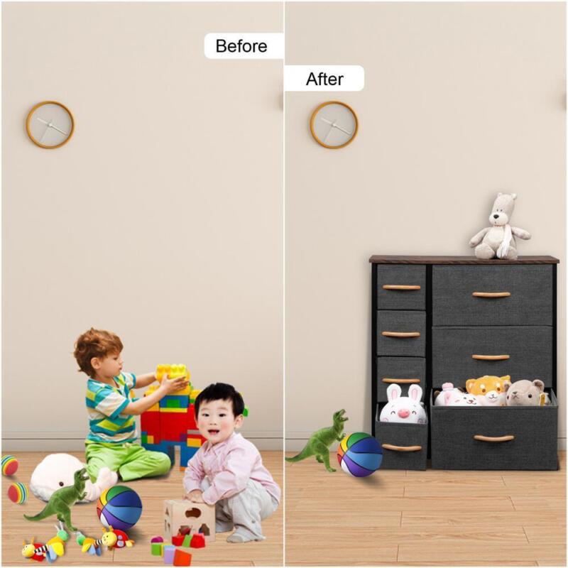 7 Drawer Chest of Drawers Fabric Storage Cabinet Kid Bedroom Organizer Drawers