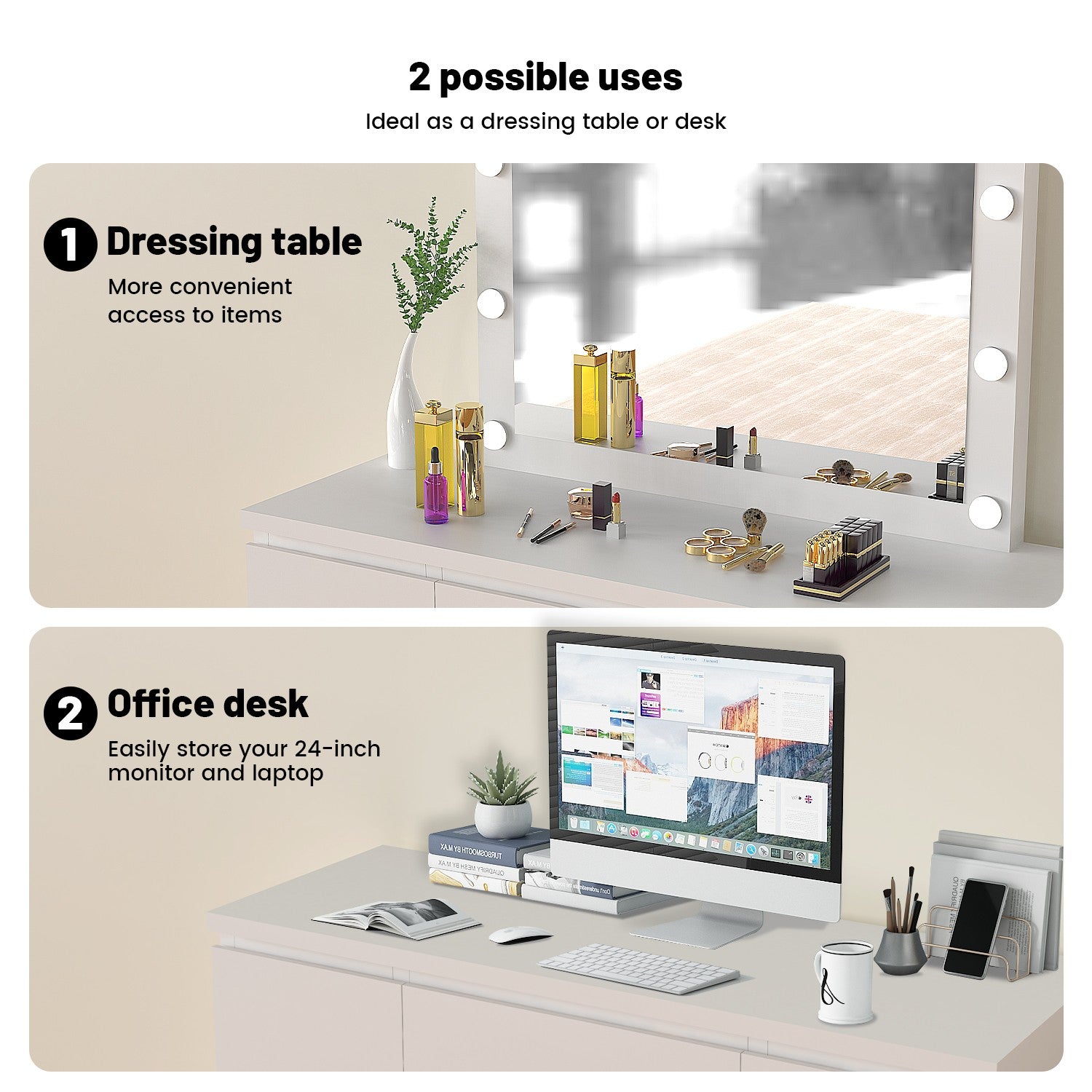 7 Drawer Dressing Table Wood Makeup Desk with Hollywood LED Mirror Bedroom Lbnar
