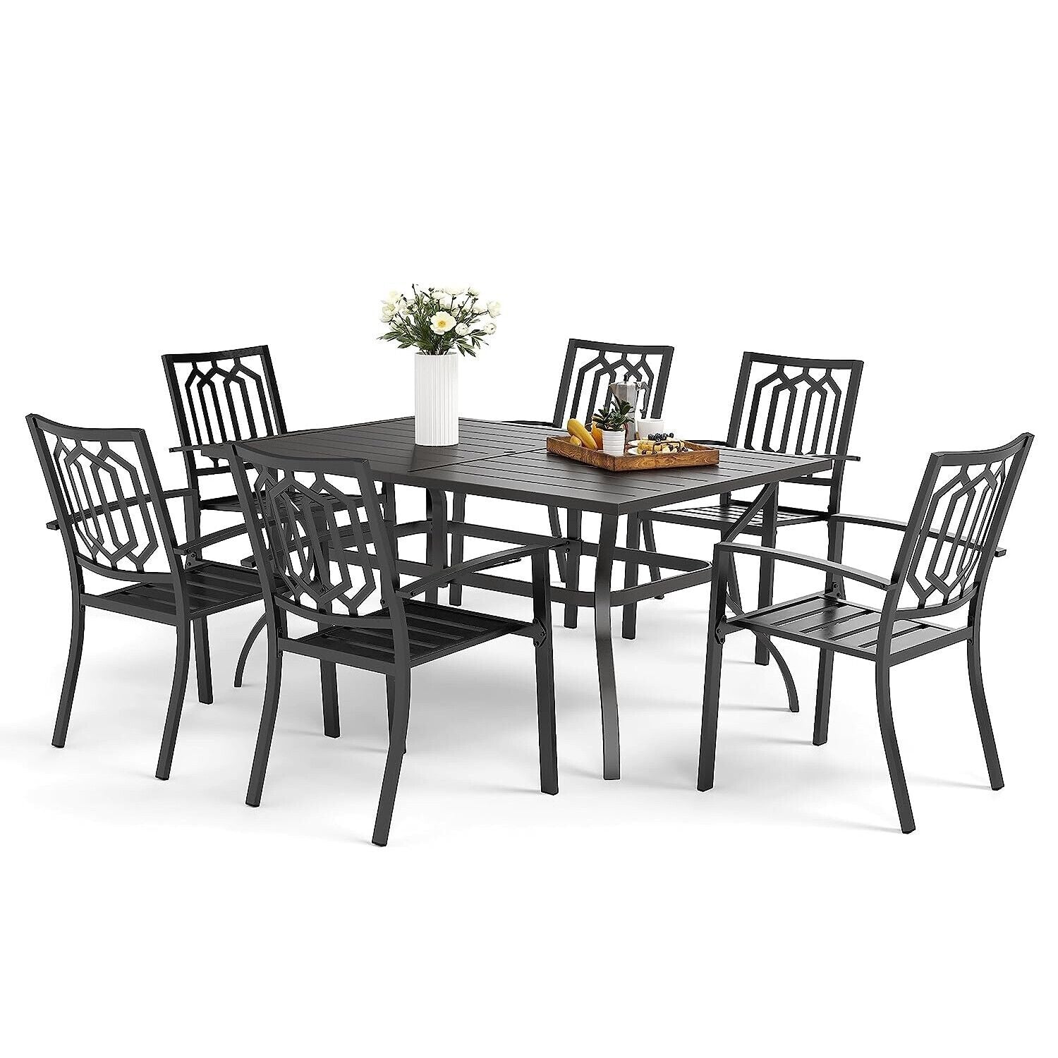 7 Pcs Garden Patio Dining Furniture Set Outdoor Furniture Stackable Chairs Table