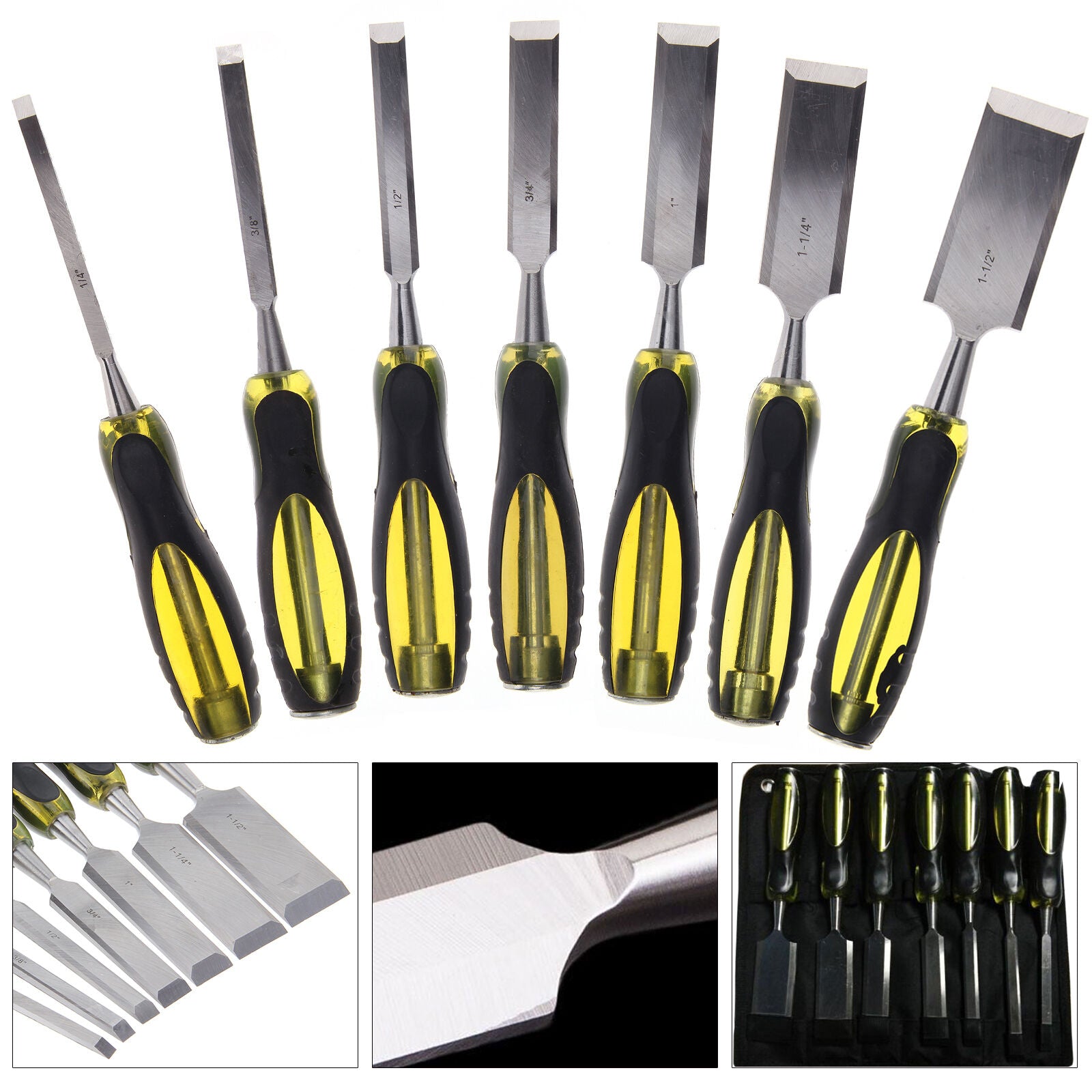 7 Pcs/Set Durable Wood Carving Chisel Wood Work Tools Chisels Carpenter Bag Case