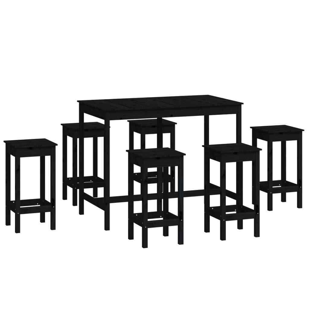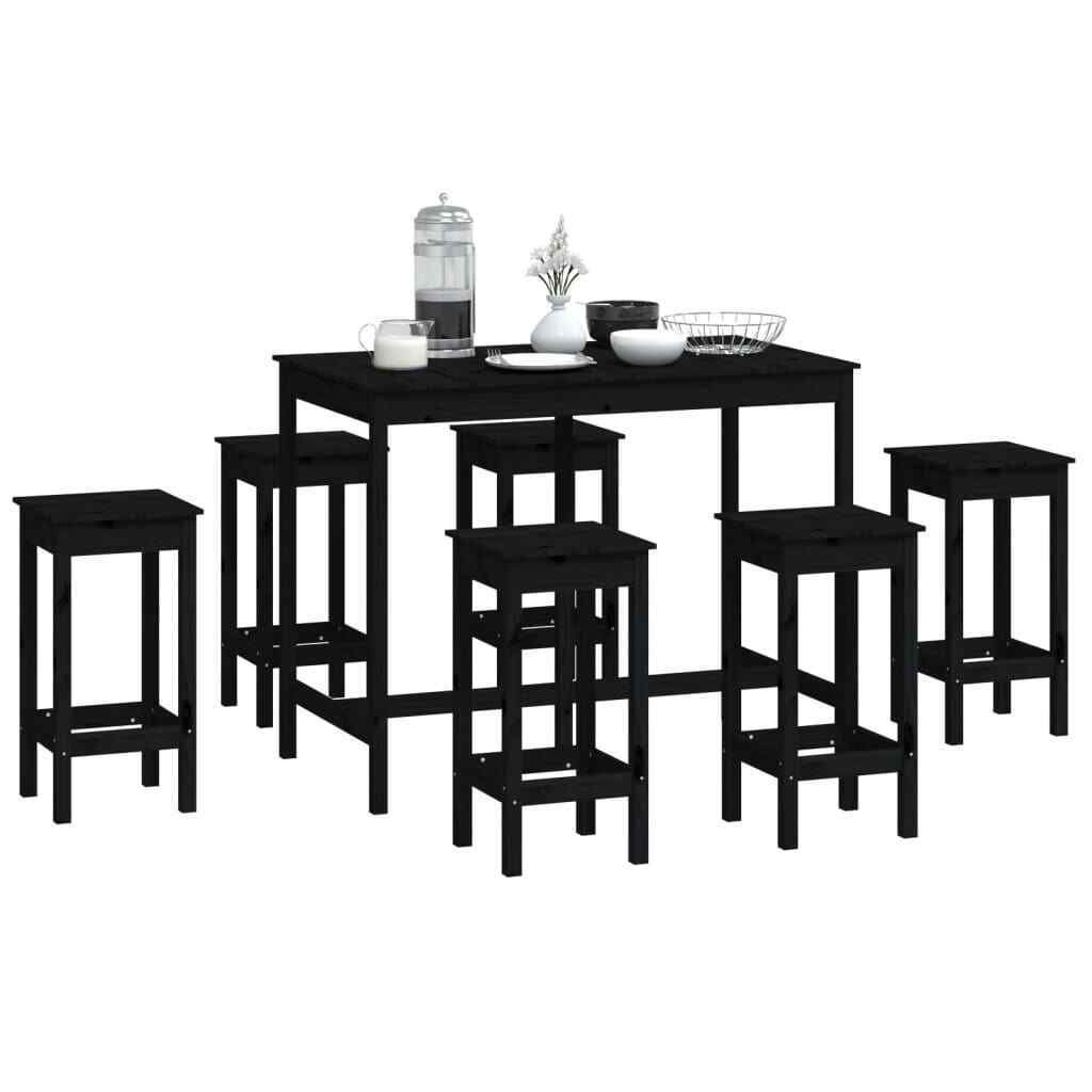 7 Piece Bar Set Black Solid Wood Pine vidaXL