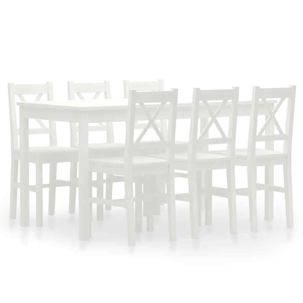 7 Piece Dining Set Pinewood White