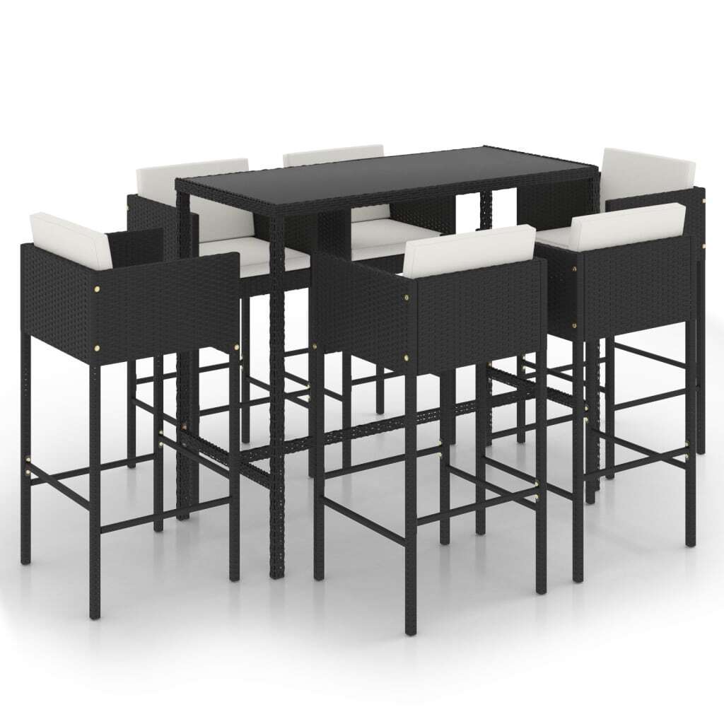 7 Piece Garden Bar Set with Cushions Poly Rattan Black
