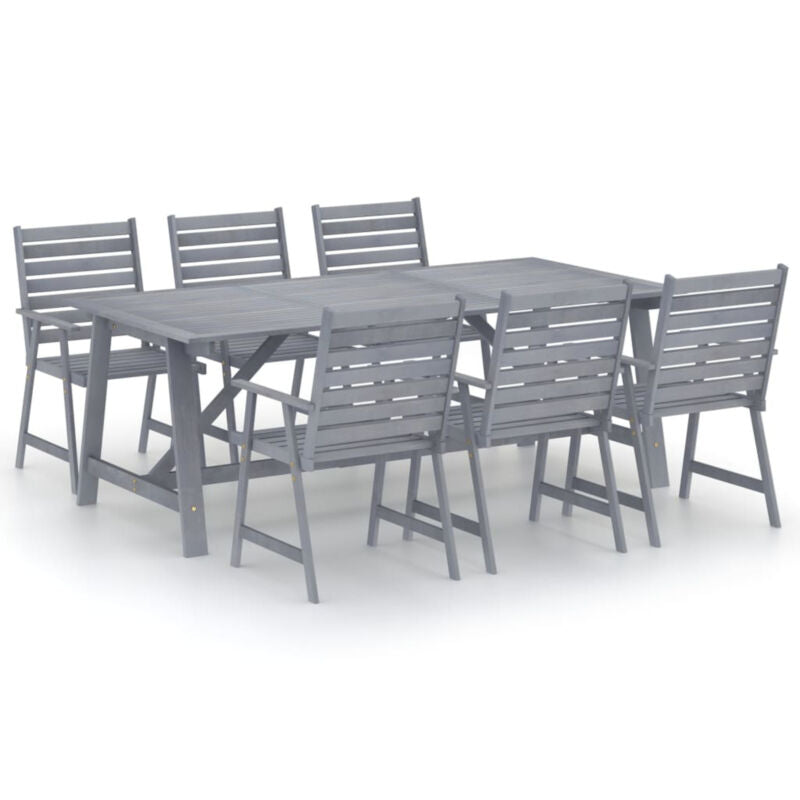 7 Piece Garden Dining Set Grey Solid Acacia Wood X9G2