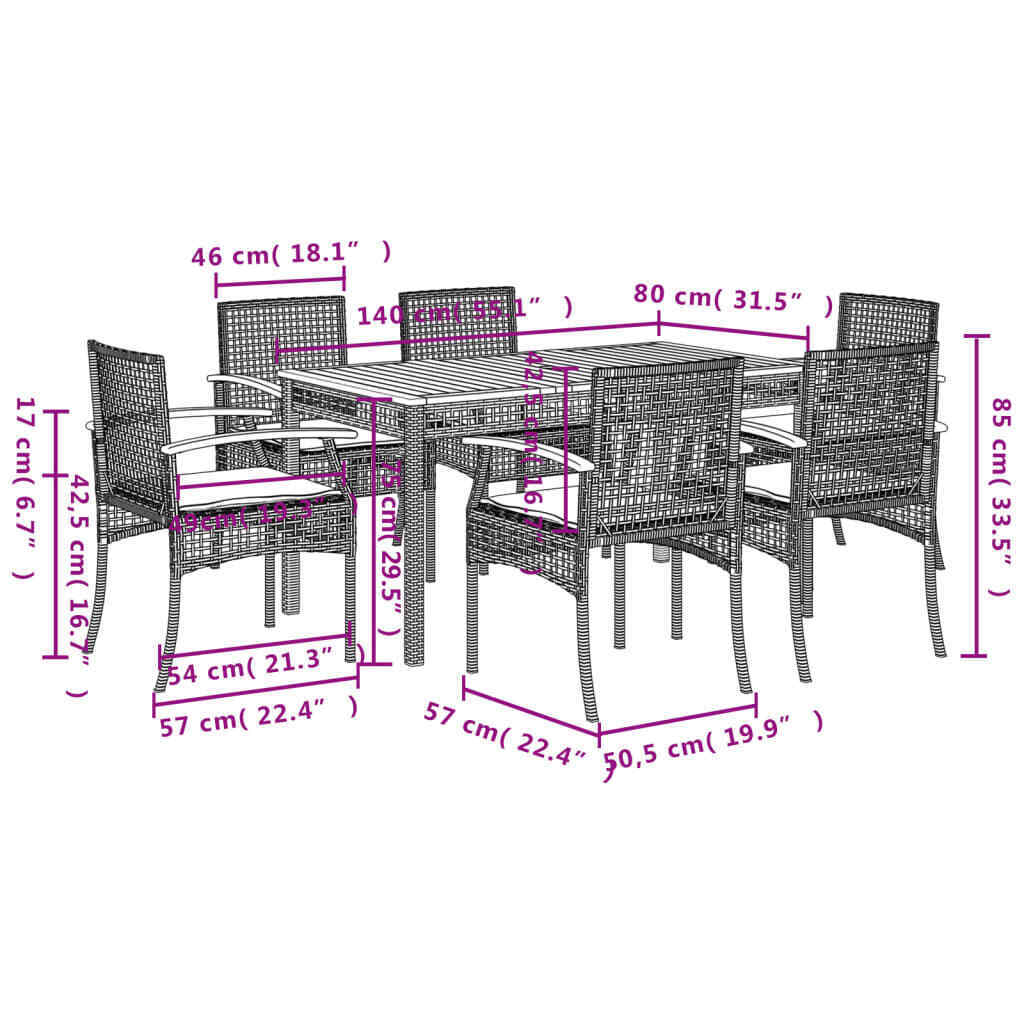 7 Piece Garden Dining Set with Cushions Beige Poly Rattan V6K1