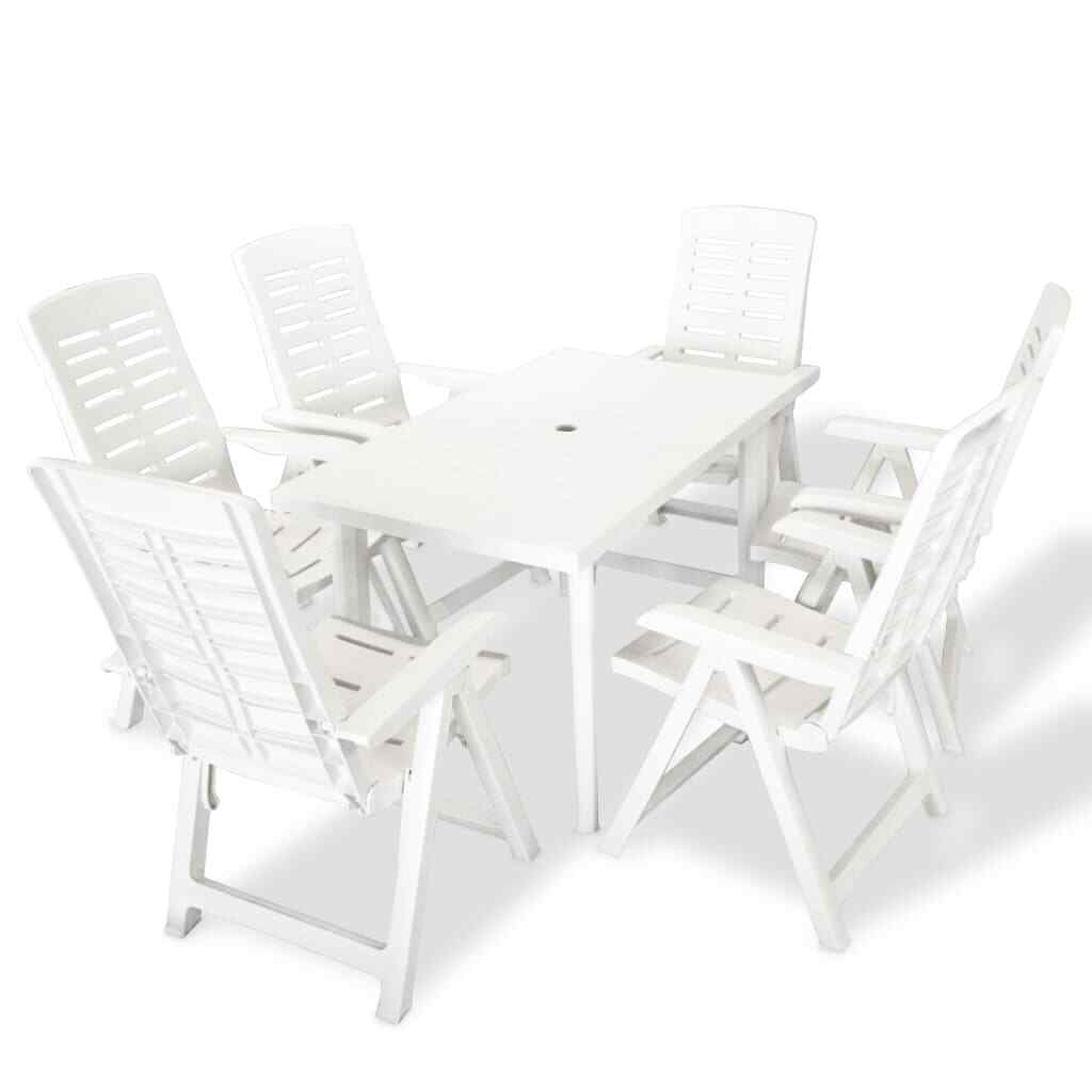 7 Piece Outdoor Dining Set Plastic White vidaXL