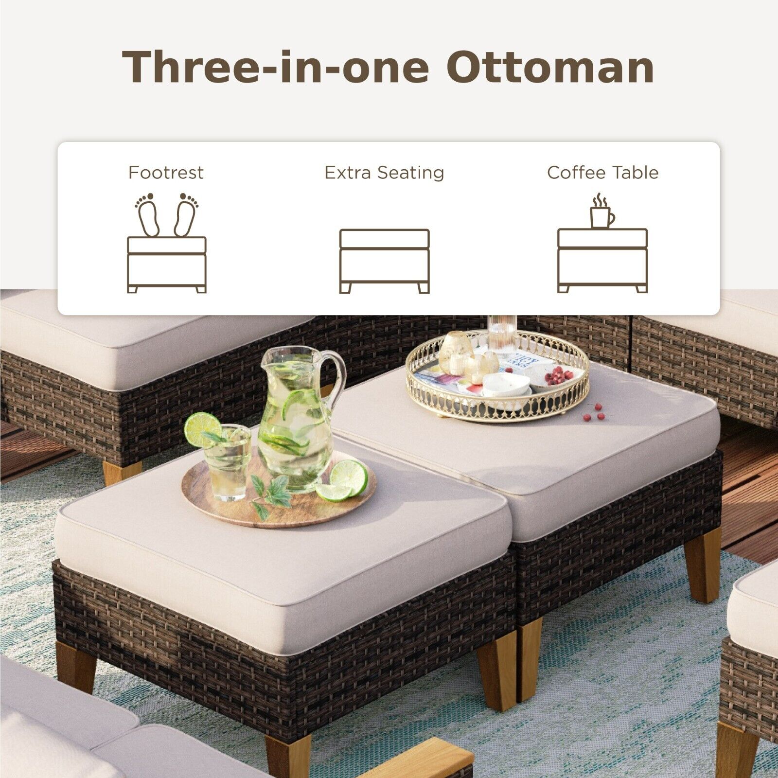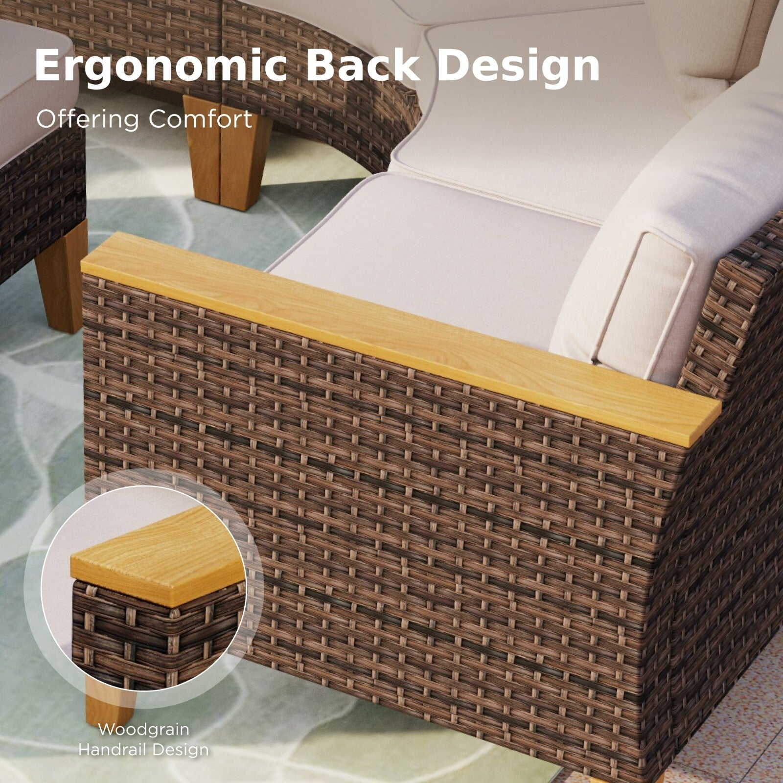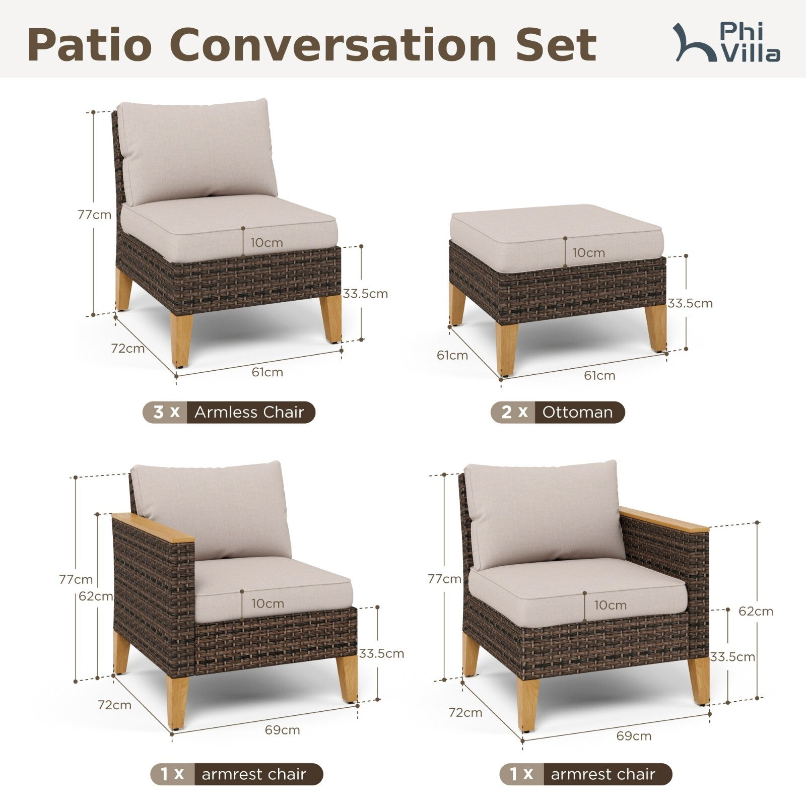7 Pieces Rattan Sofa Set Wicker Sectional Cushion Patio Beige Cushion Garden